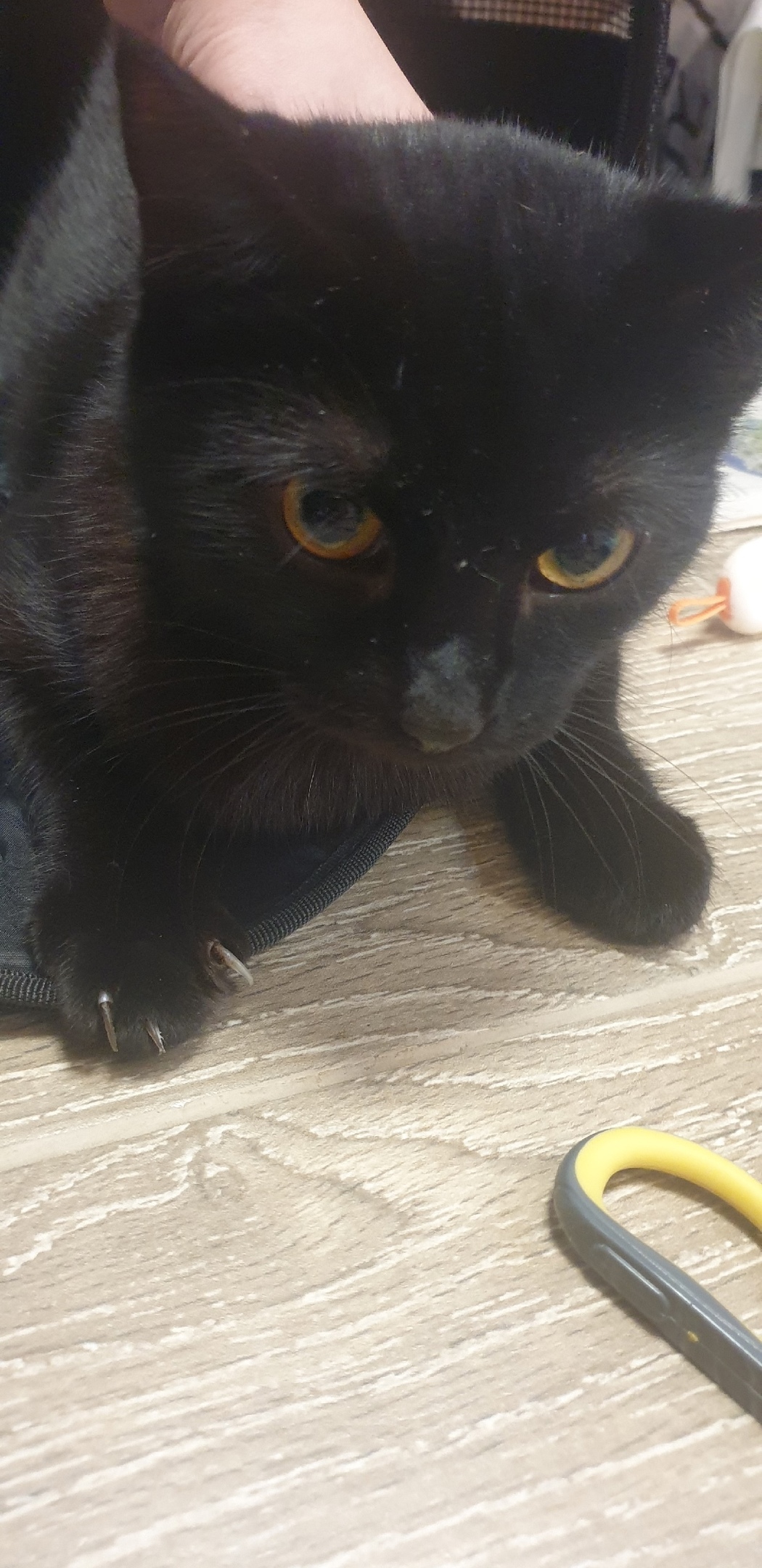 В районе Клыкова найден чёрный кот с жёлтым ошейником, не боится людей, добрый, спокойный, может, хозяин узнает своего питомца