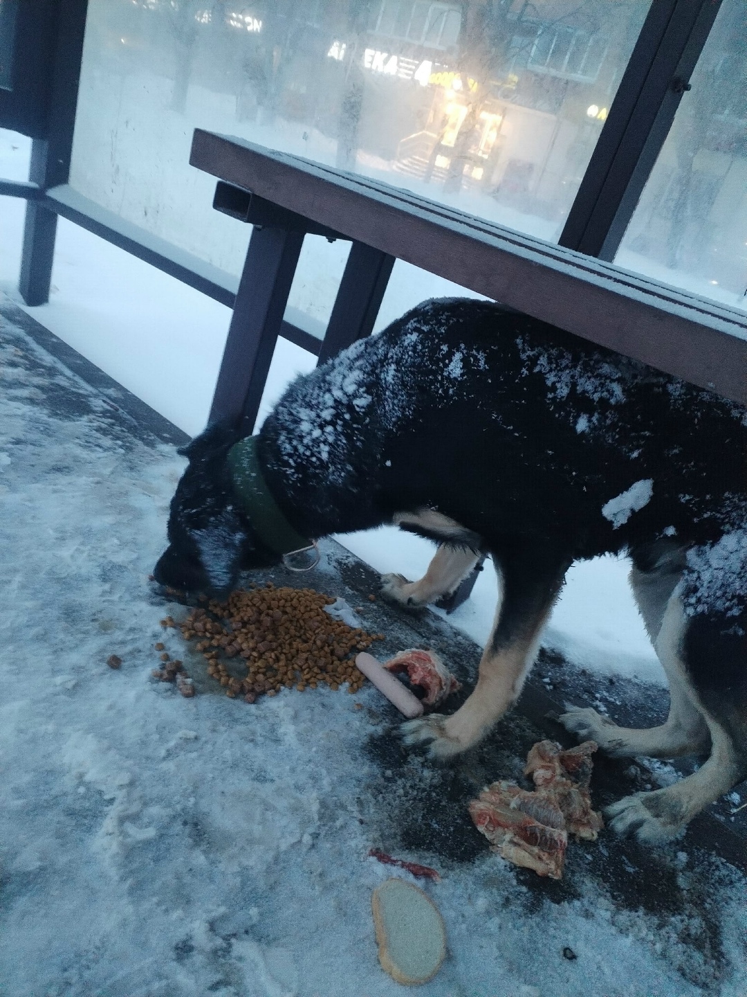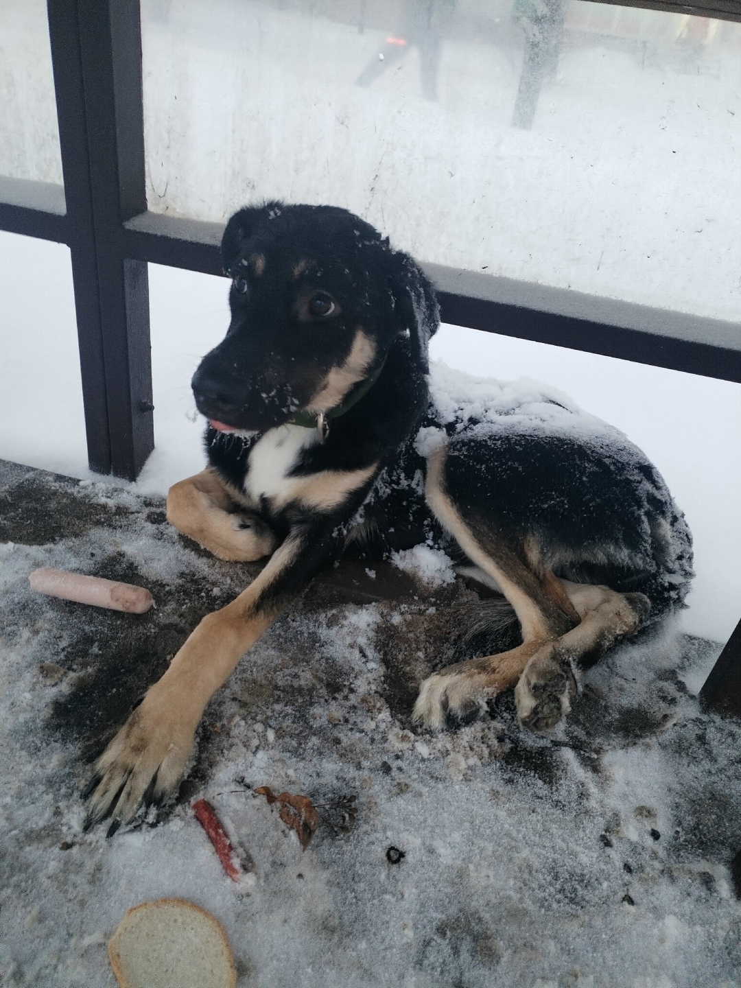 На остановке Народная замерзает молодой пёсик с ошейником