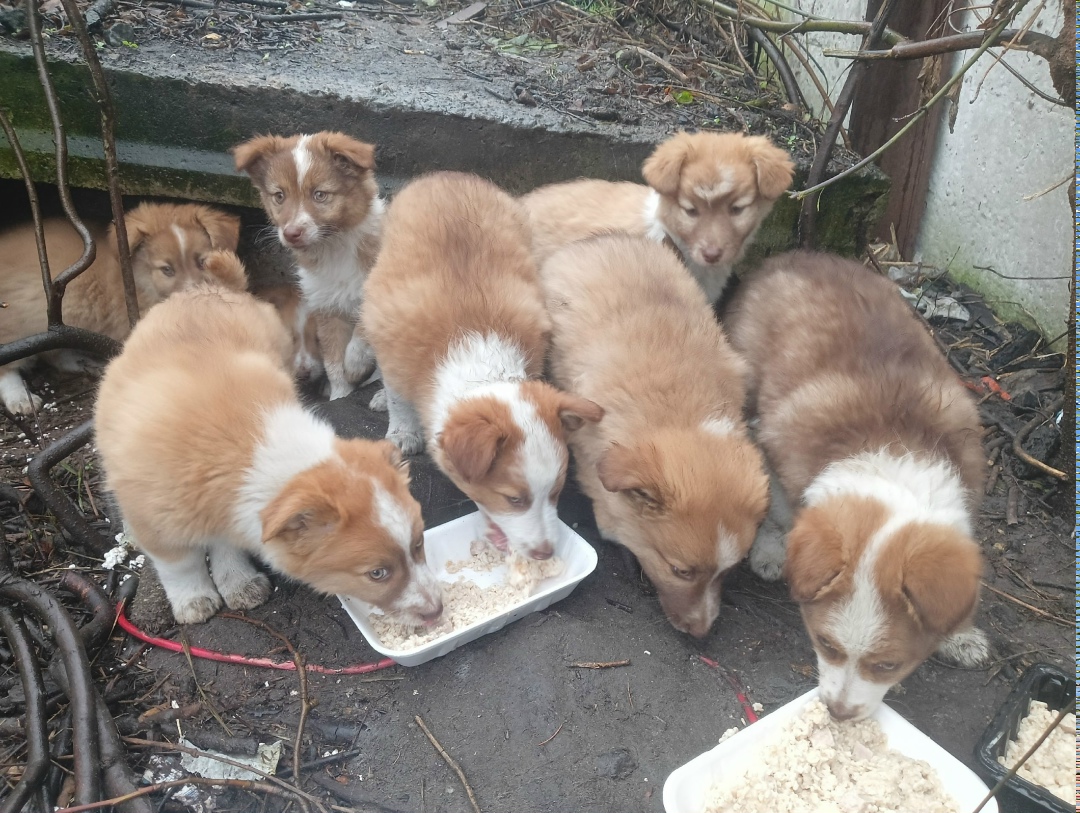 Срочно ищут дом малыши-карандаши‼️ Примерно в сентябре к гаражам прибилась молоденькая собачка, как оказалась, недалеко она ощенила 8 замечательных малышей, все выжили, подросли (примерно 2,5 месяца), окрепли и даже научились подавать голос (очень стараются защищать свою территорию), кушают с большим аппетитом сваренную им кашу, молоко, бульон, корм (да все)