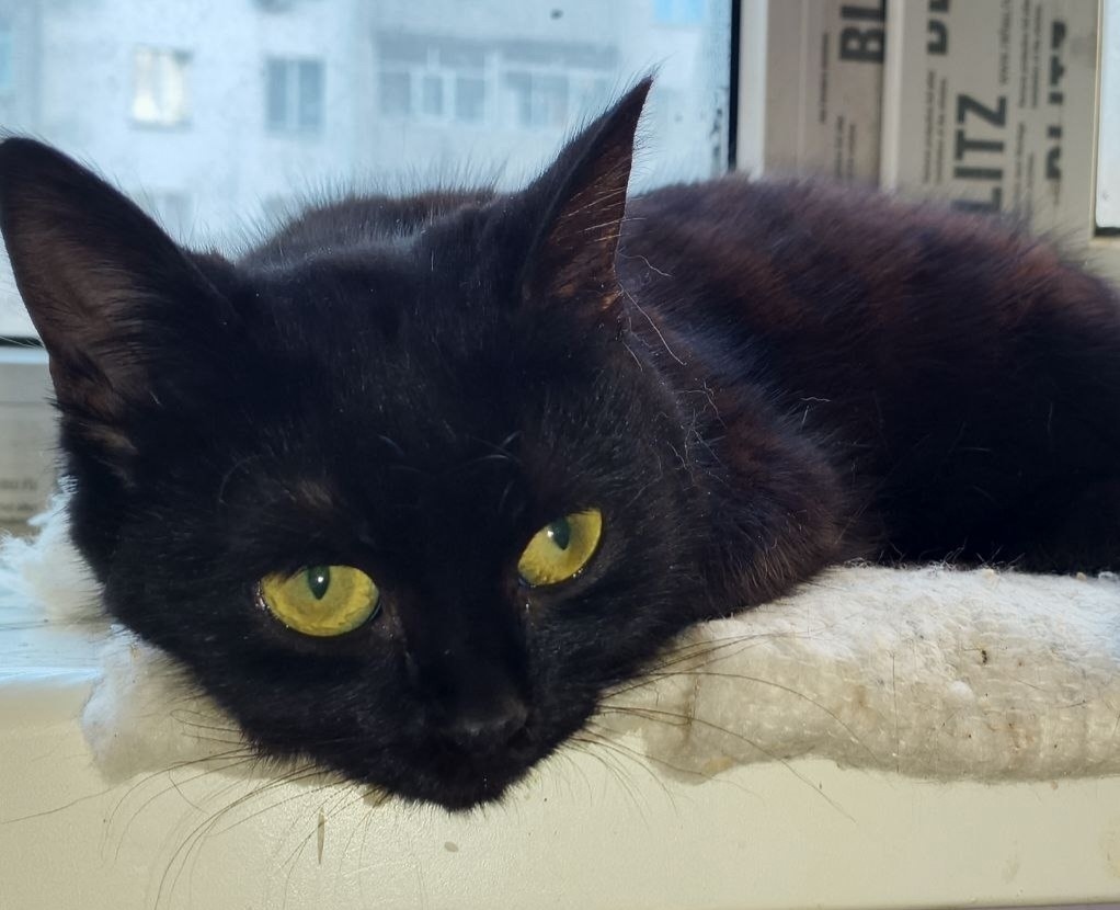 Невероятно обаятельная, преданная и очень неодооценённая мурлыка. Гладкая , блестящая шёрстка выглядит как чёрное бархотное платье от кутюр. Такая же ласковая, игривая , как котята любого другого окраса . Просто дайте ей шанс!