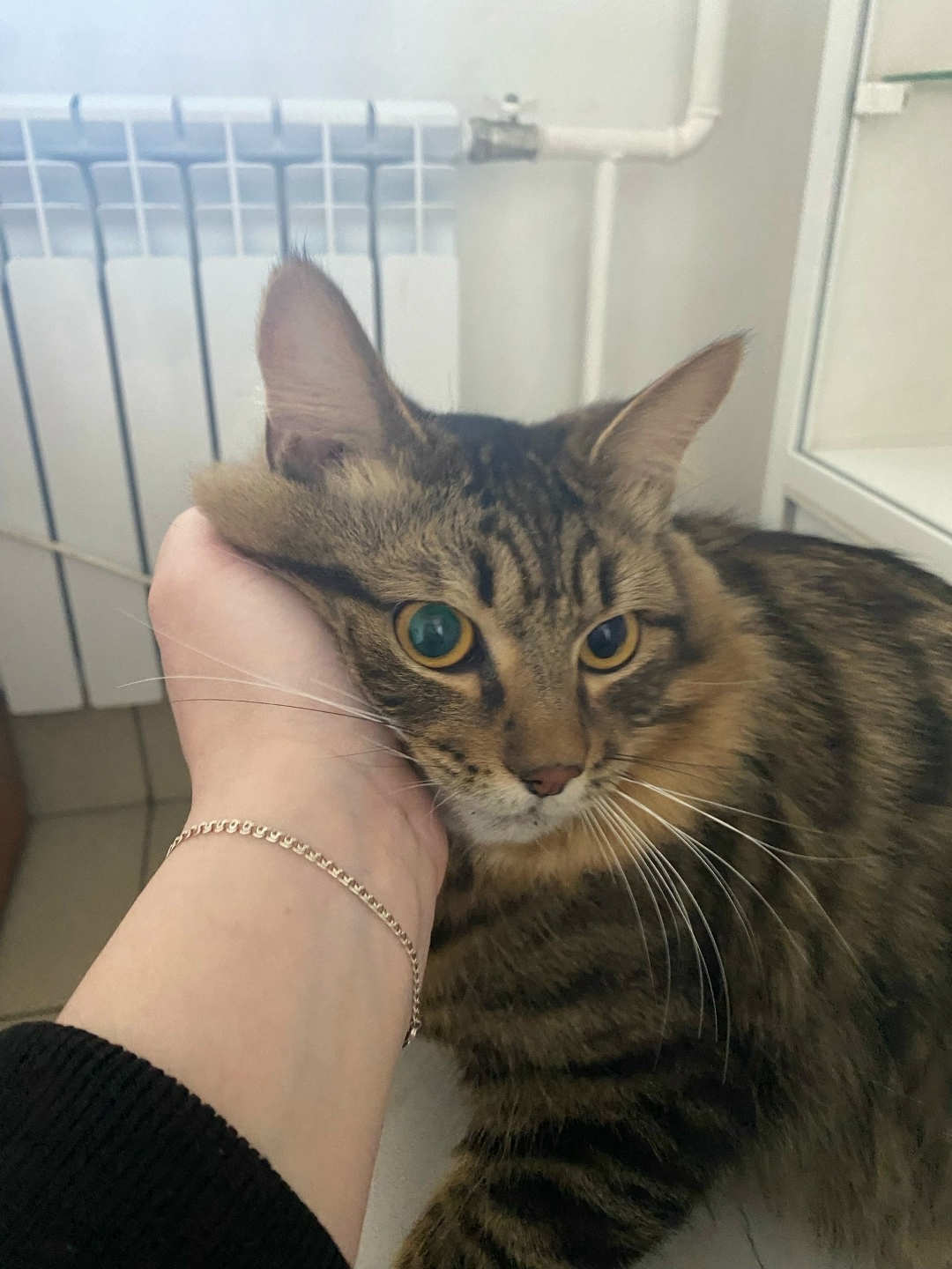найден кот на КСК, в р-не ветклиники. 4 мкр, по всей видимости выпал из окна того же дома на дерево возле. 79962794756