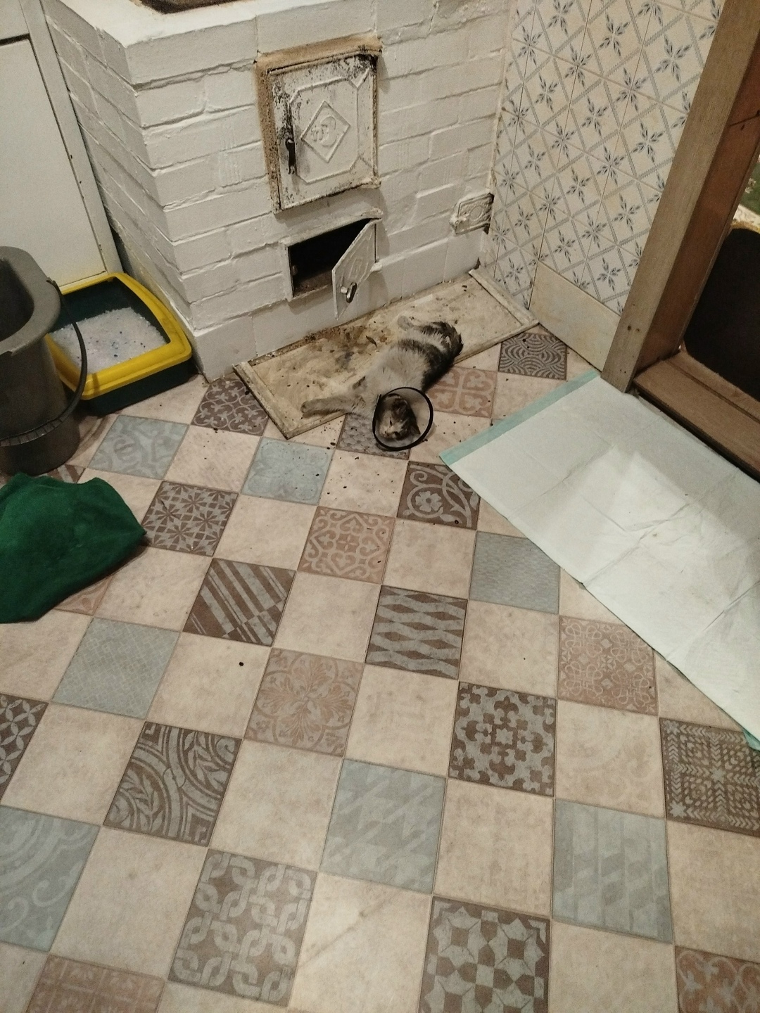 ЛОЖИМСЯ УЖЕ ЗАВТРА В БОЛЬНИЦУ! Помогите, пожалуйста! Вчера на морозе подобрала котёнка 4 месяца уши обморожены, грязный, замезший. Диагноз выпадение прямой кишки. В ветклинике вправили и подшили и теперь нужен уход и наблюдение. Нужна передержка.Корм и антибиотики есть. Оставить не могу так как маленький ребёнок болеет и мы ложимся в больницу. Помогите пожалуйста кто может взять. 89148702584