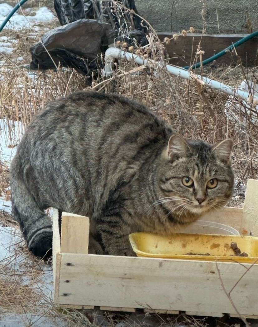 Судя по расцветке когда-то был домашний ( может кто-то потерял) котик упитанный