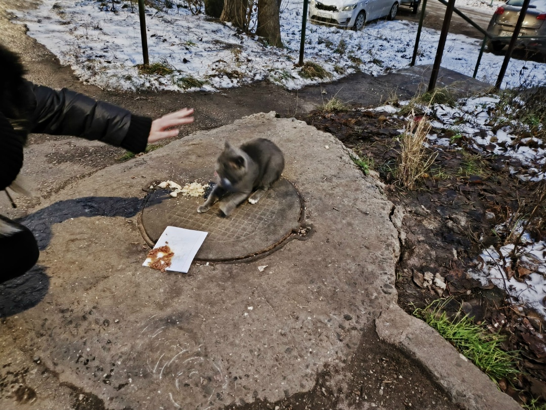 ‼‼‼ Найден кот, пугливый, очень голодный, греется у люка. Заберите кто нибудь, у самого нет возможности. 🙏
