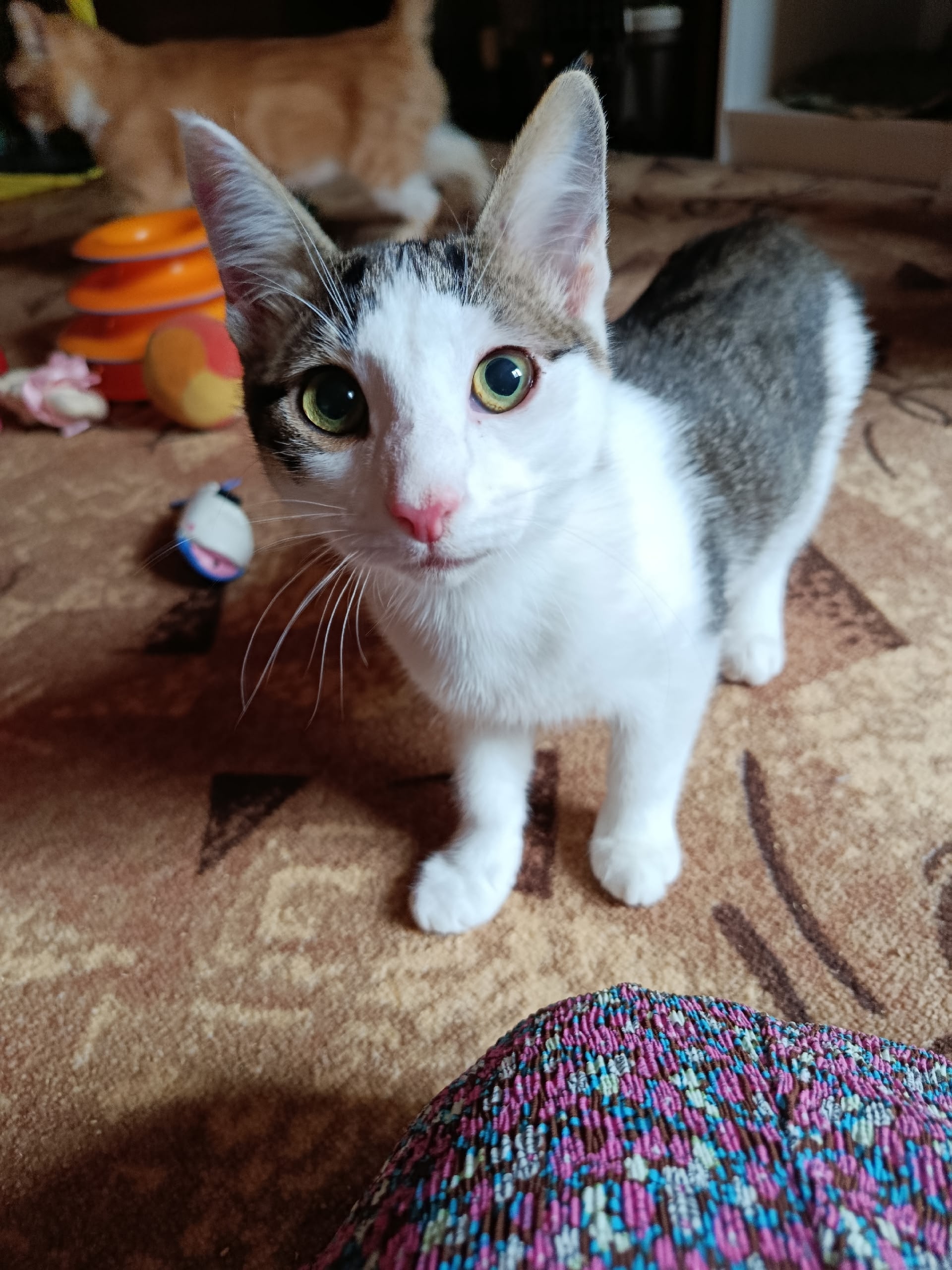 Ушасто- лопухастое, длинноногое создание по имени Крош, которому, примерно, 4,4-5 месяцев, ищет своих любимых и ответственных хозяев. Обязуется: всегда быть рядом ,любить и мурчать, чтобы вы не нервничали . Котёнок уникальный- был найден на Крещение, в критическом состоянии , когда на улице не было ни людей, ни животных. Но он выжил и очень хочет быть рядом с человеком! В лоток пошёл сразу ( но контроль в первое время нужен). Паспорт есть. Без самовыгула- уже нагулялся. Если заинтересованы: пишите Телеграмм, Макс, Ватсап. Не всегда могу отвечать на звонки.