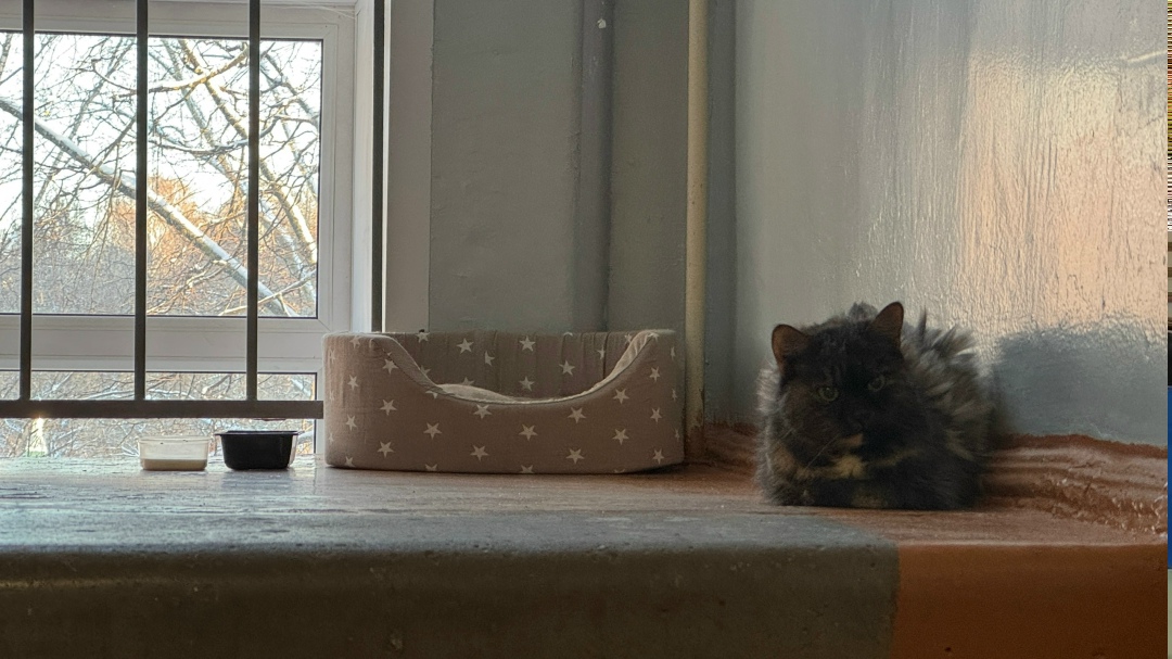 К себе взять не могу, пока что обустроена в подъезде.