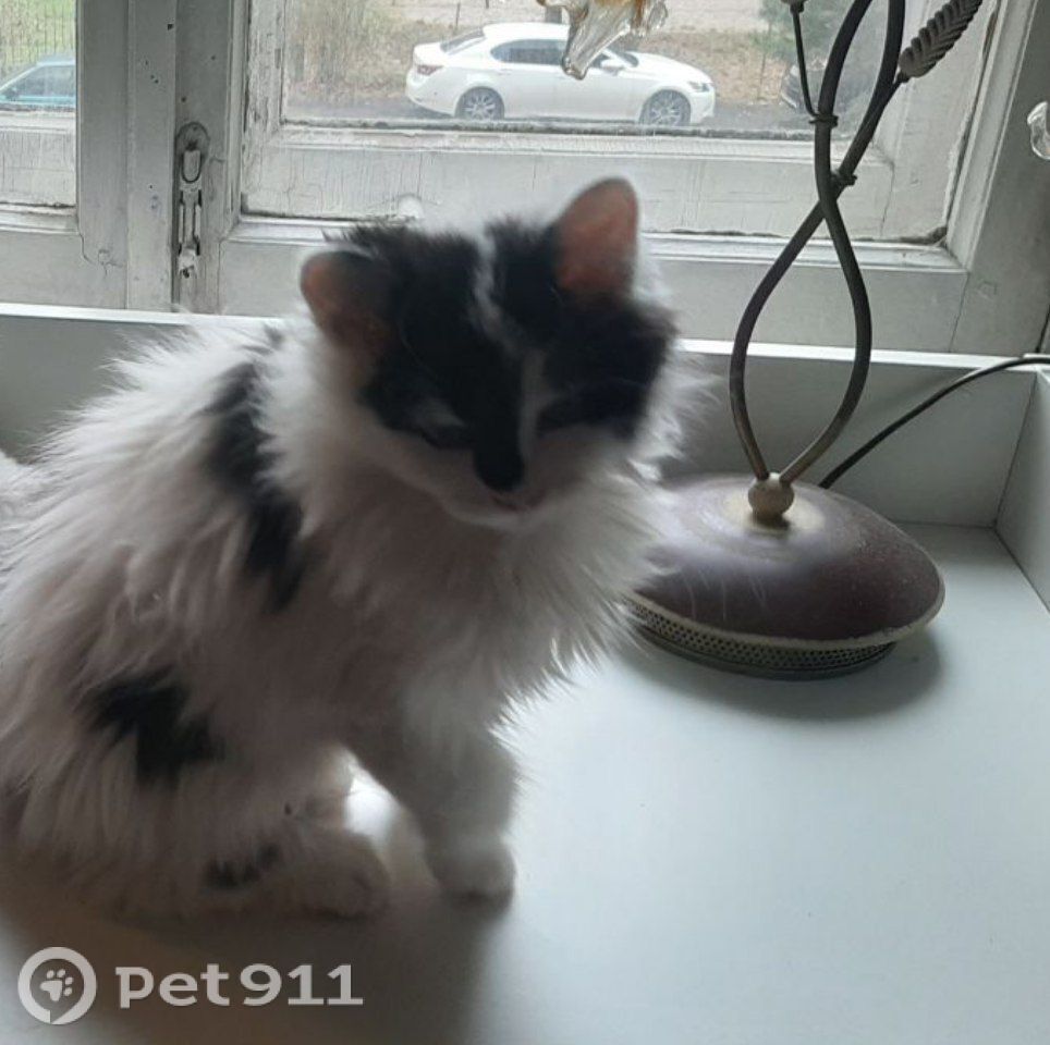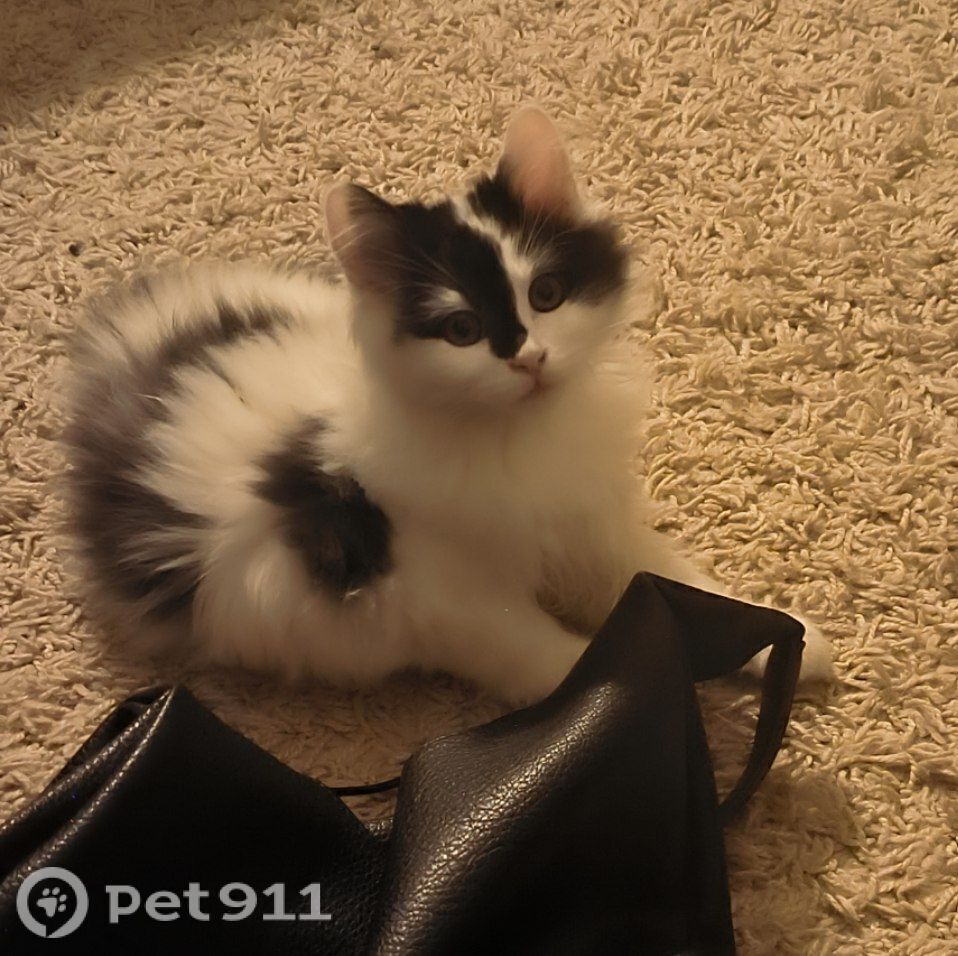 ласковый мальчик трёх месяцев, окрас чёрно-белый, пушистый.