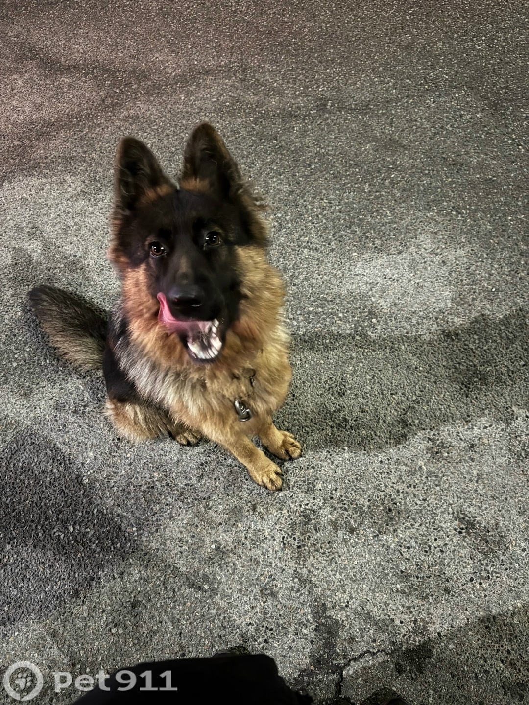 По заправке СургутНефтеГаз на выезде из города бегает овчарка с сорванным поводком. Подбегает ко всем людям. Явно потерялся.