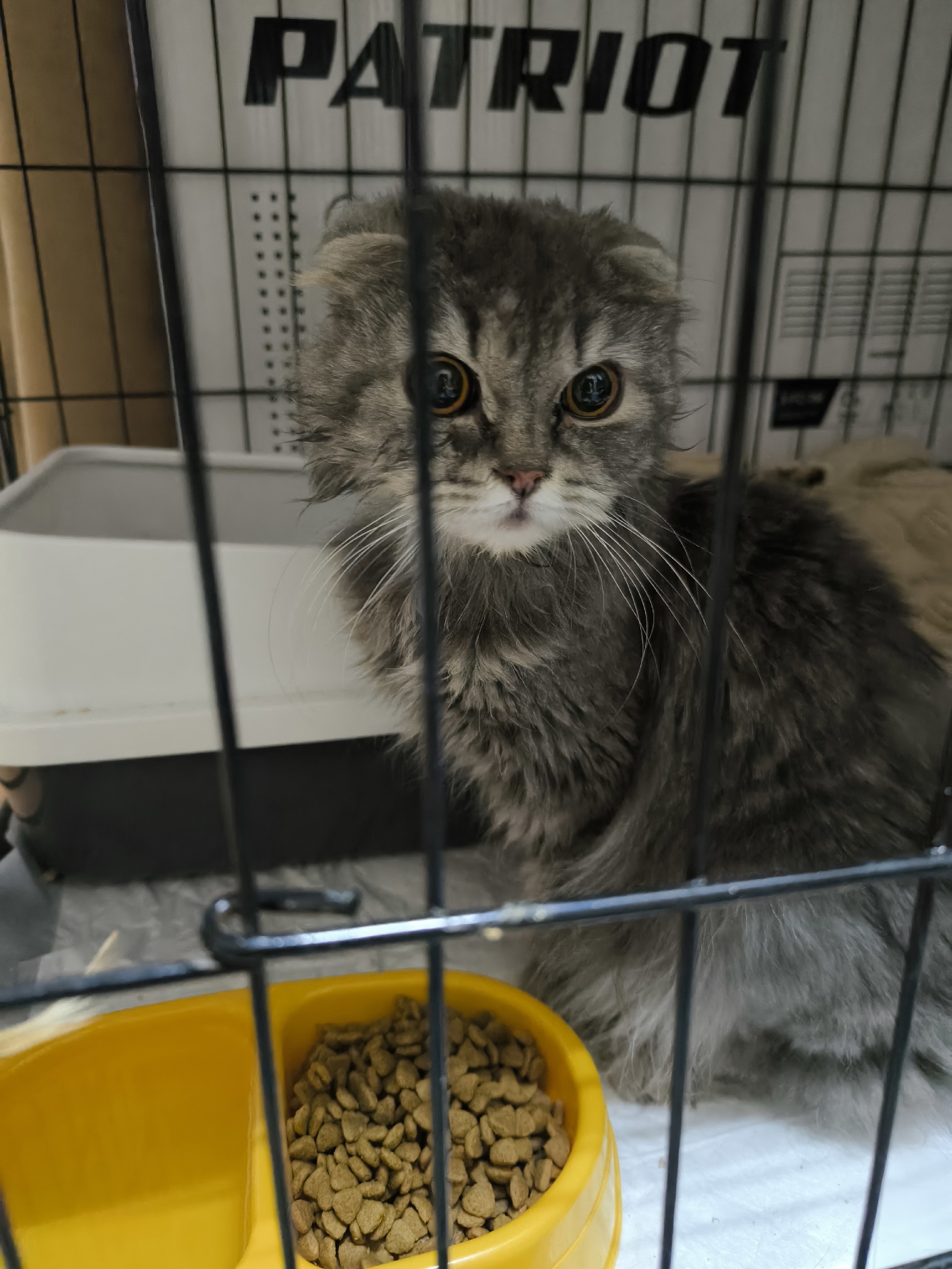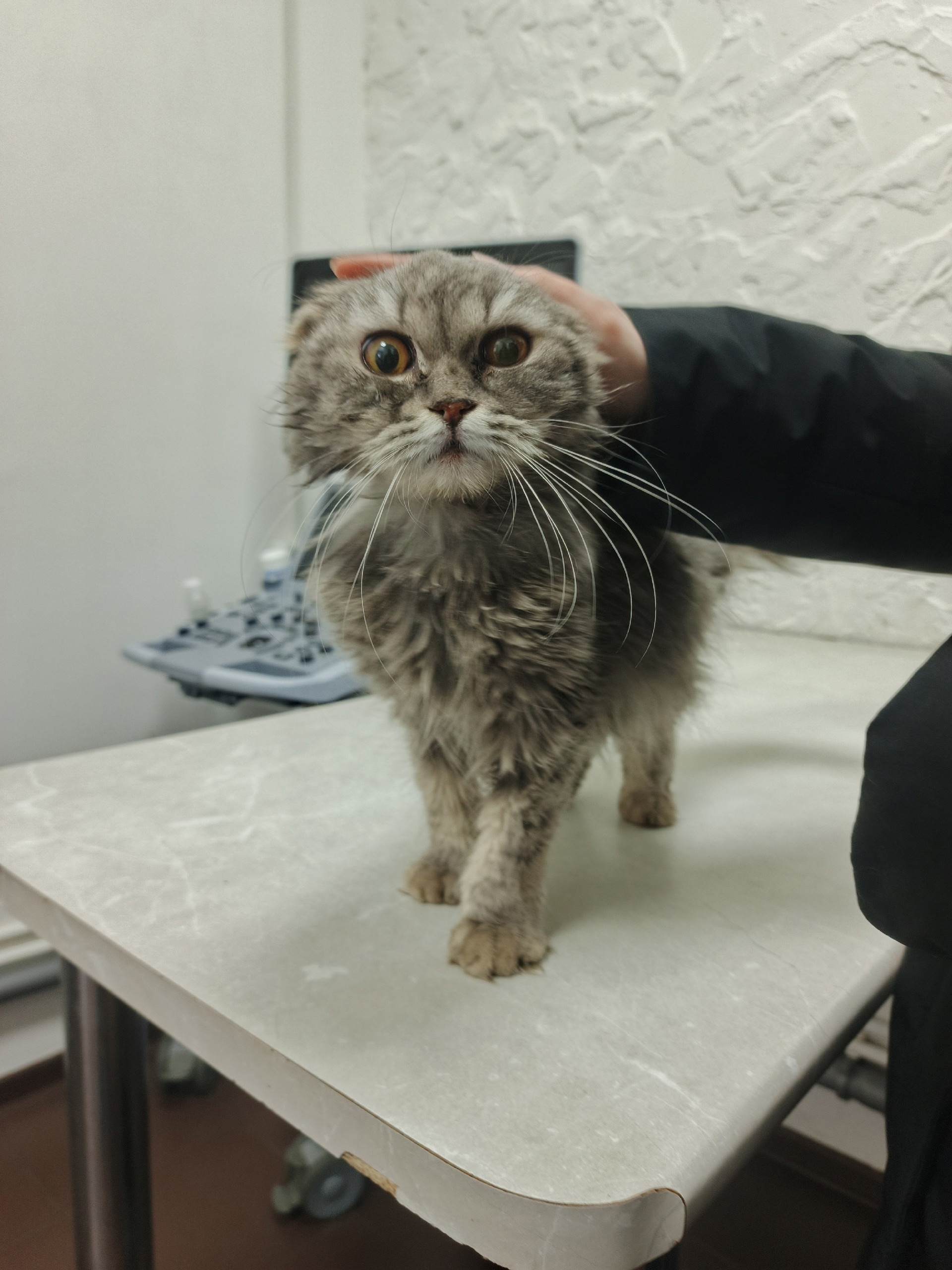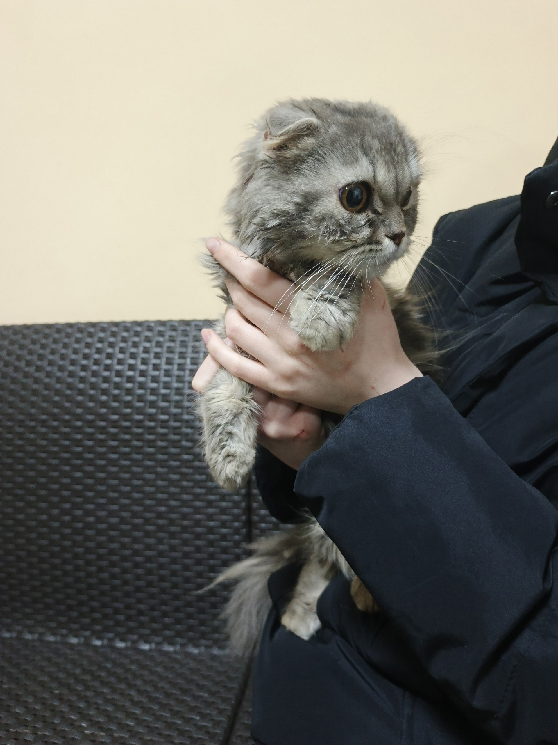 Она похожа на маленького взъерошенного совёнка. На самом деле она очень маленькая и худенькая, просто пушистая. Надеемся, что Эльза скоро придёт в норму: сейчас она просто радуется тёплой лежаночке, мисочке с едой и ласке. Ей нравится, когда её гладят и берут на руки — это очень важно для неё после всего того, что ей пришлось пережить.