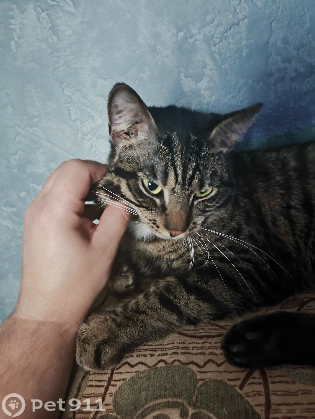 Окрас сложно описать словами, приложены фото. Из особенностей - небольшой участок шерсти на шее "галстучек". Кота брал с улицы котенком, 11 месяцев назад, все это время жил в квартире. Убежал в открытую форточку ванной комнаты поздно вечером, примерно 22:00 - 23:00