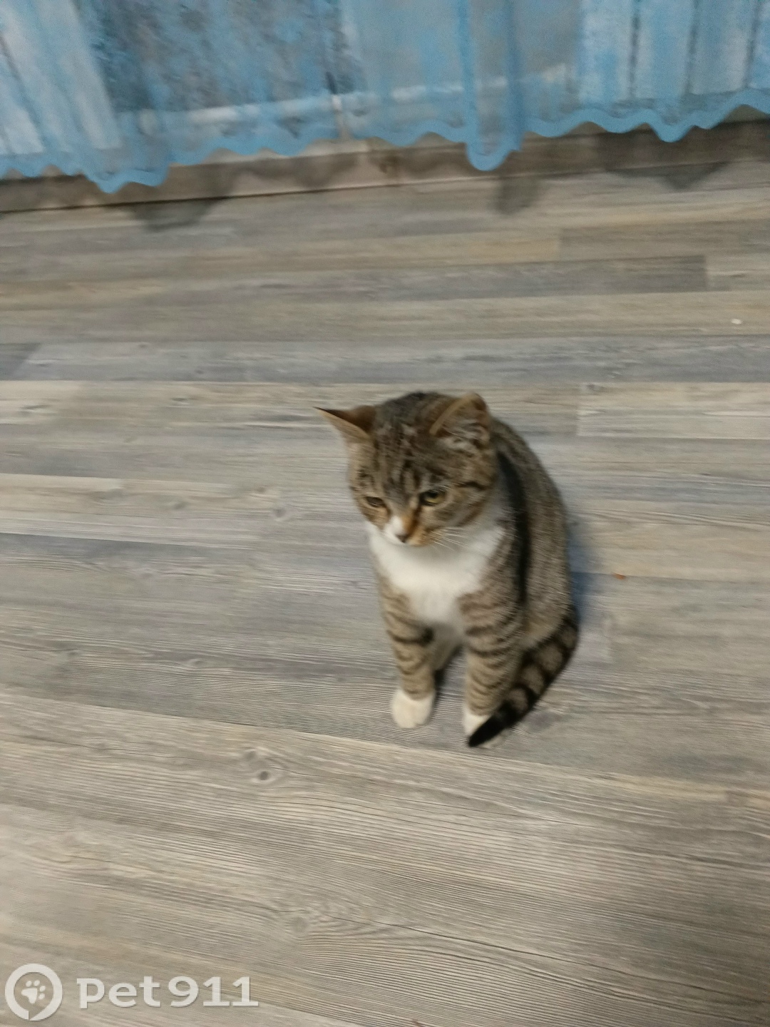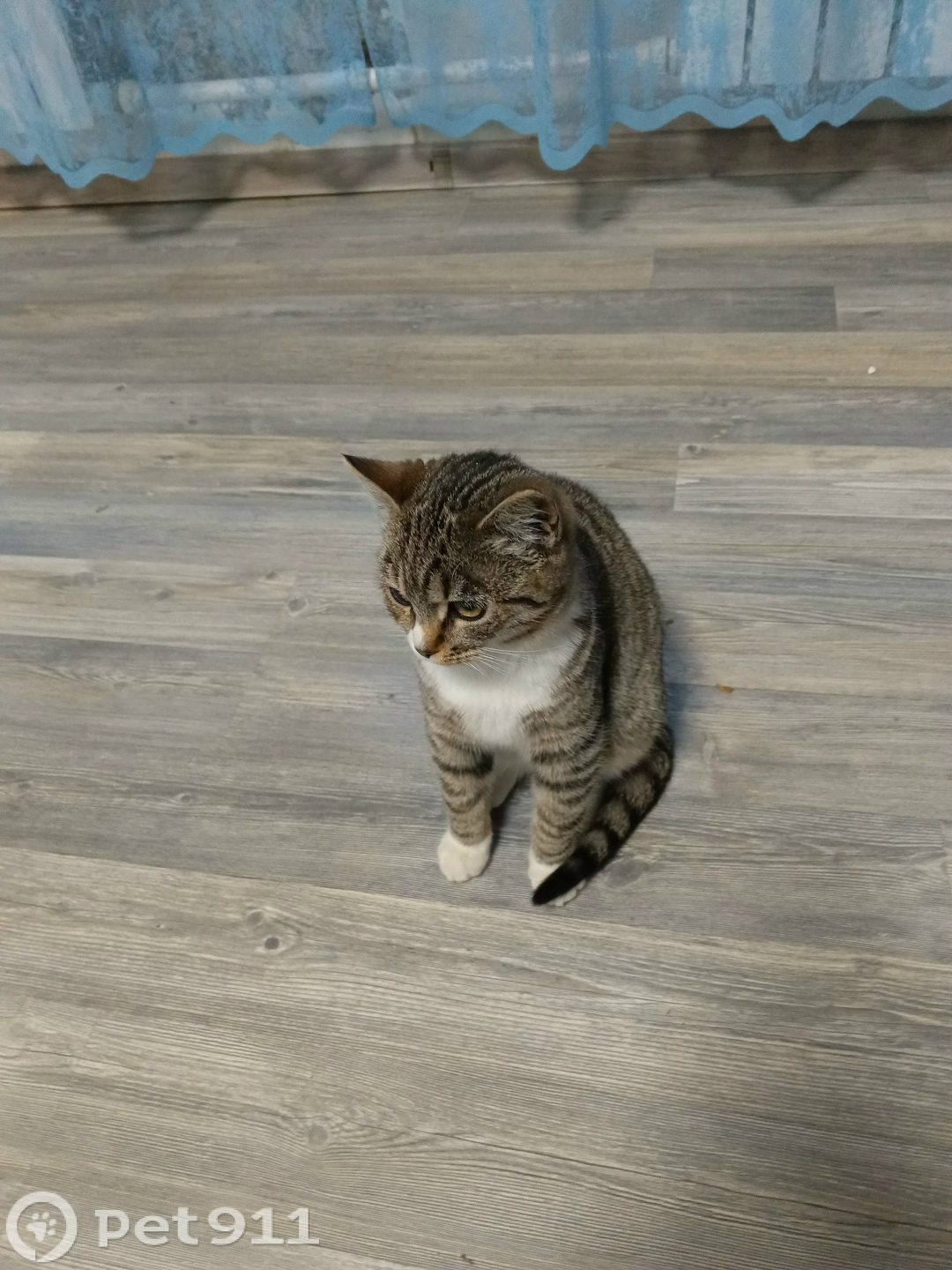 Серенькая с белой грудкой, очень ласковая игривая добрая. Прошу хазяин найдись пожалуйста