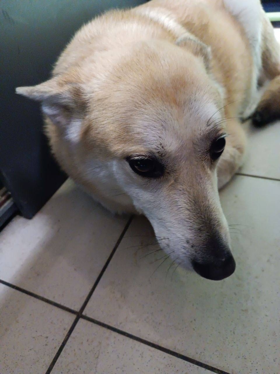 Прибежал в пятероку на добросельской, прячется от петард, ошейника нет, но пес холеный, упитанный, чистый. Может хозяин ищет. В 21:00 магазин закроется и его выгонят на улицу