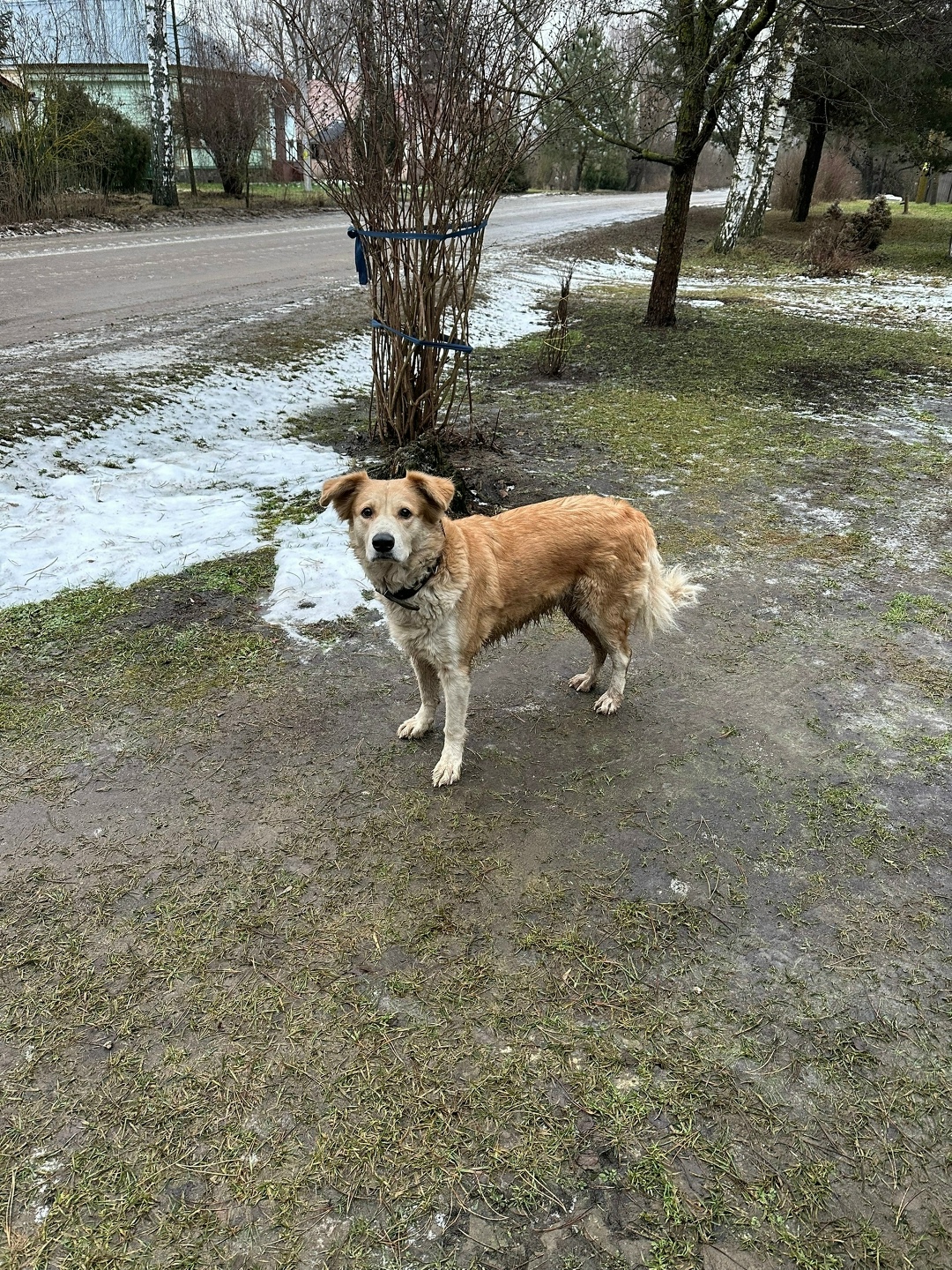 Всем добрый день! В деревню Кузьмино прибилась собачка, девочка, с ошейником. Собака не агрессивная, подходит, контактирует, но все равно пугается. Может убежала у кого то с ближайший деревень.