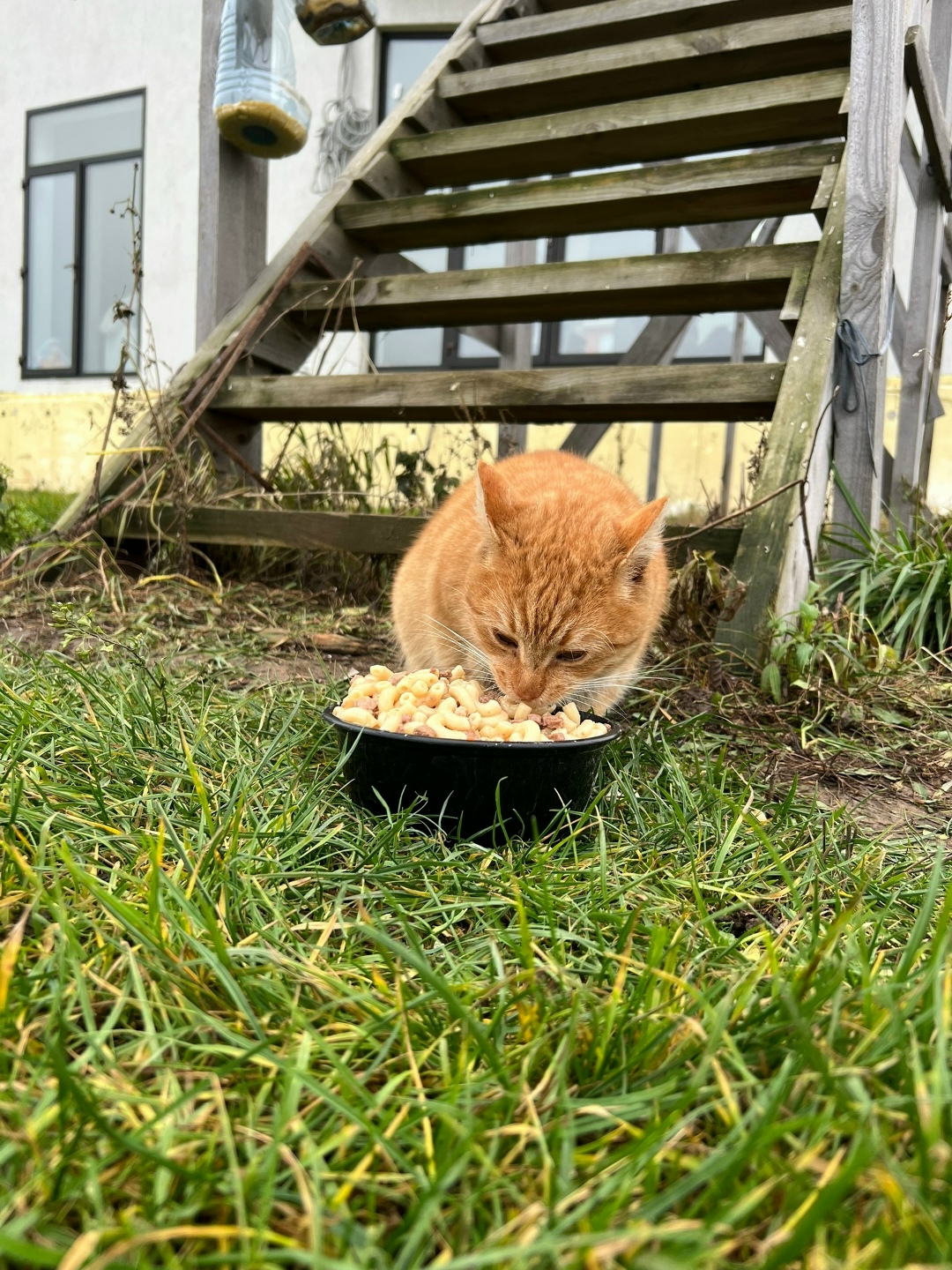 Очень голодный. Сначала боялся нас, теперь начал доверять, так как мы его кормим 🙏🏻 Уже даже подходит, чтобы его погладили 🙏🏻🙏🏻🙏🏻 Очень ласковый ❤️