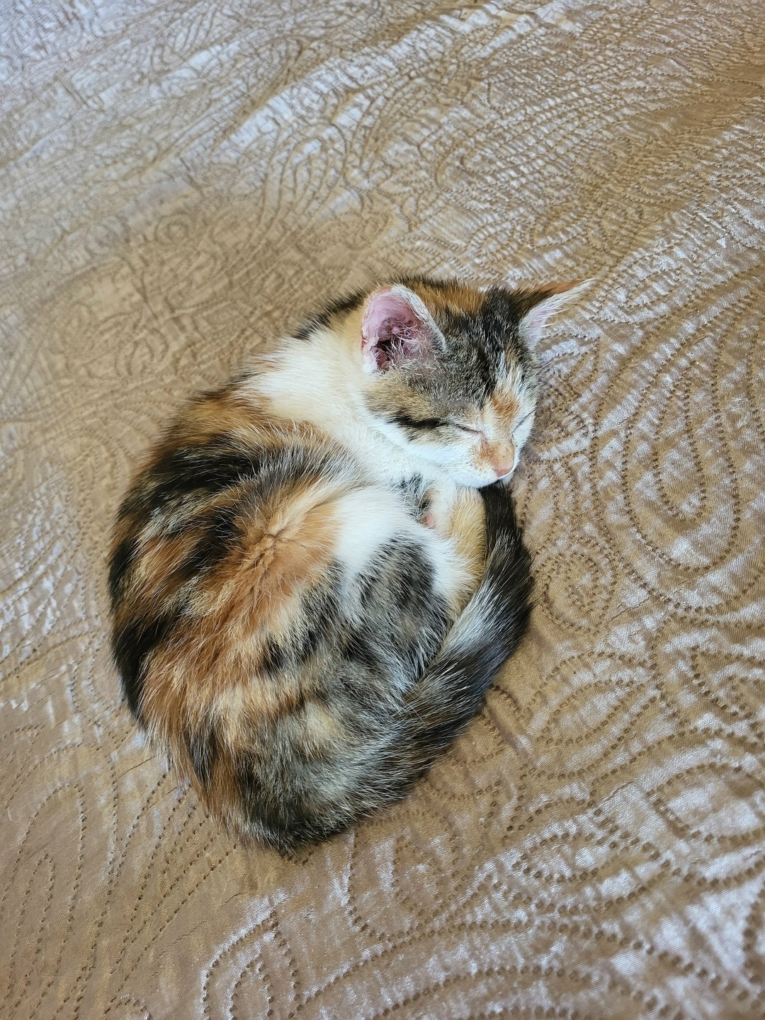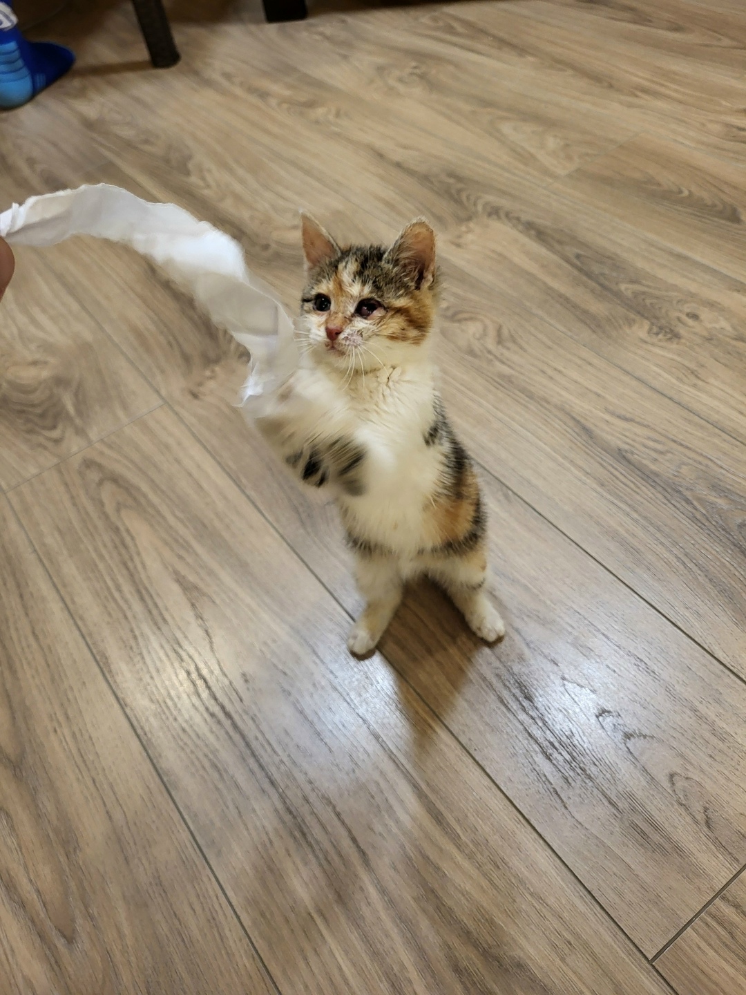 К лотку она приучена, если найдётся неравнодушный человек — готов привезти кошку в переноске