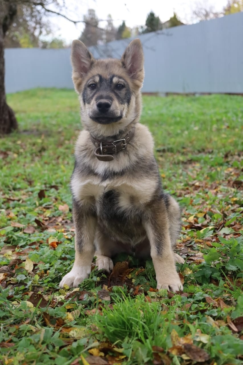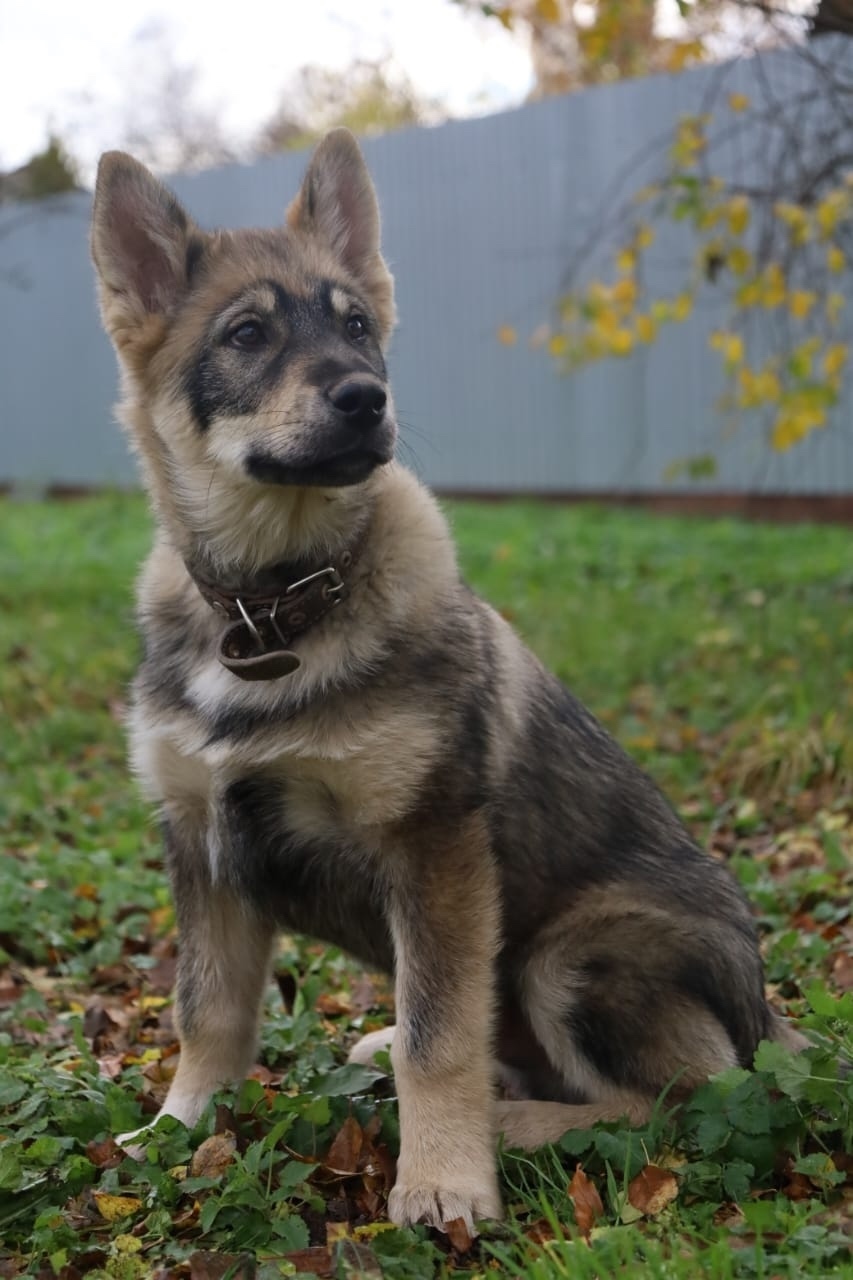 Оливер с белой лапкой. Он с более мягким характером. Щенки человекоориентированы. Ладят с другими животными и с детьми.