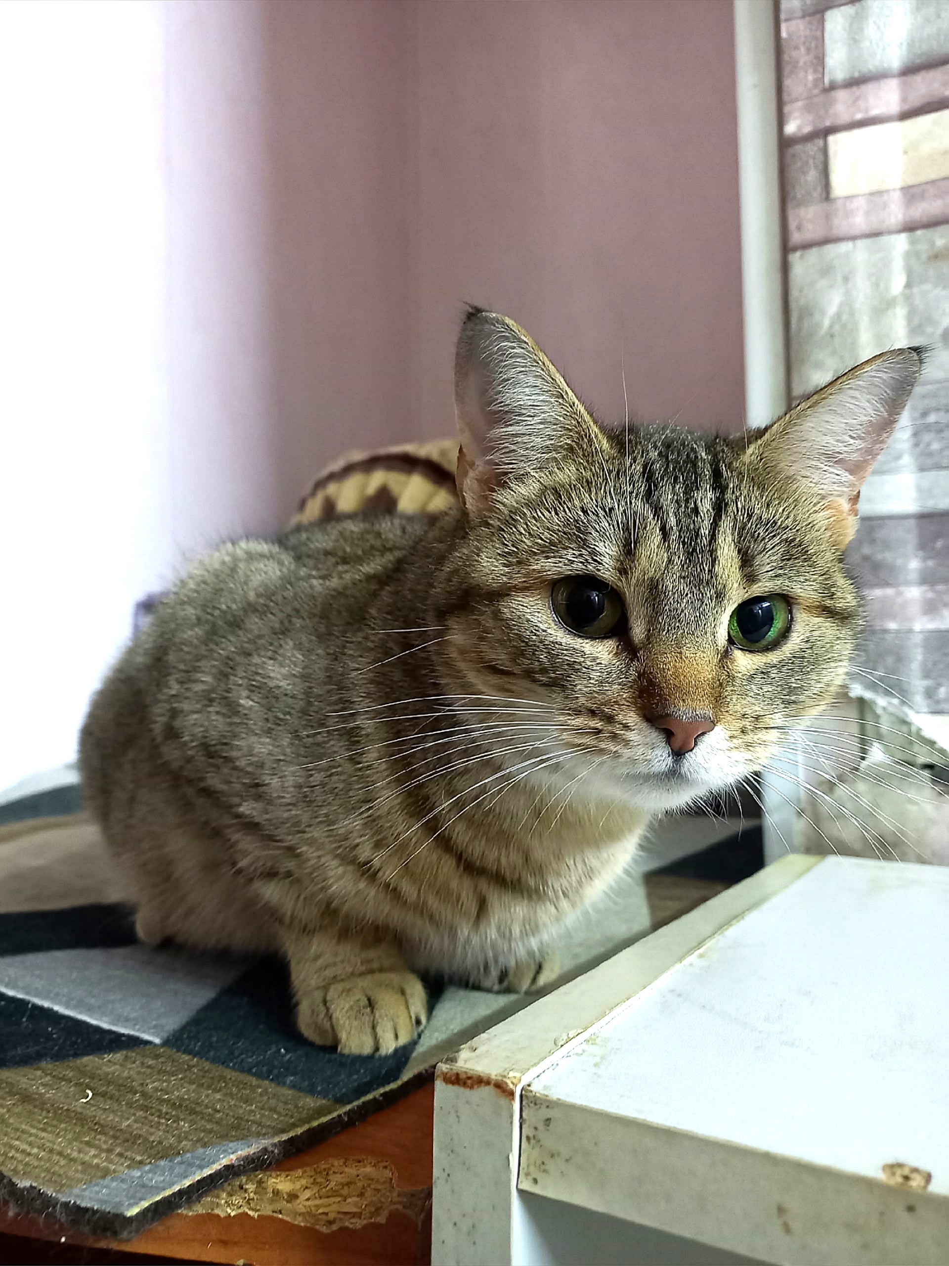 Жила у магазина, потерялась или бросили - гадать не берусь, но кошка точно бывшедомашняя. Молодая, стерилизована, обработана, лоток с древесным наполнителем знает и успешно им пользуется. Ласку принимает благосклонно, но фамильярностей не любит. С сородичами общается, но предпочитает спать в уединении. Кошка, которая ревностно охраняет личное пространство. Симпатяга и хлопотунья, этакая хозяюшка Валта ищет 🏡