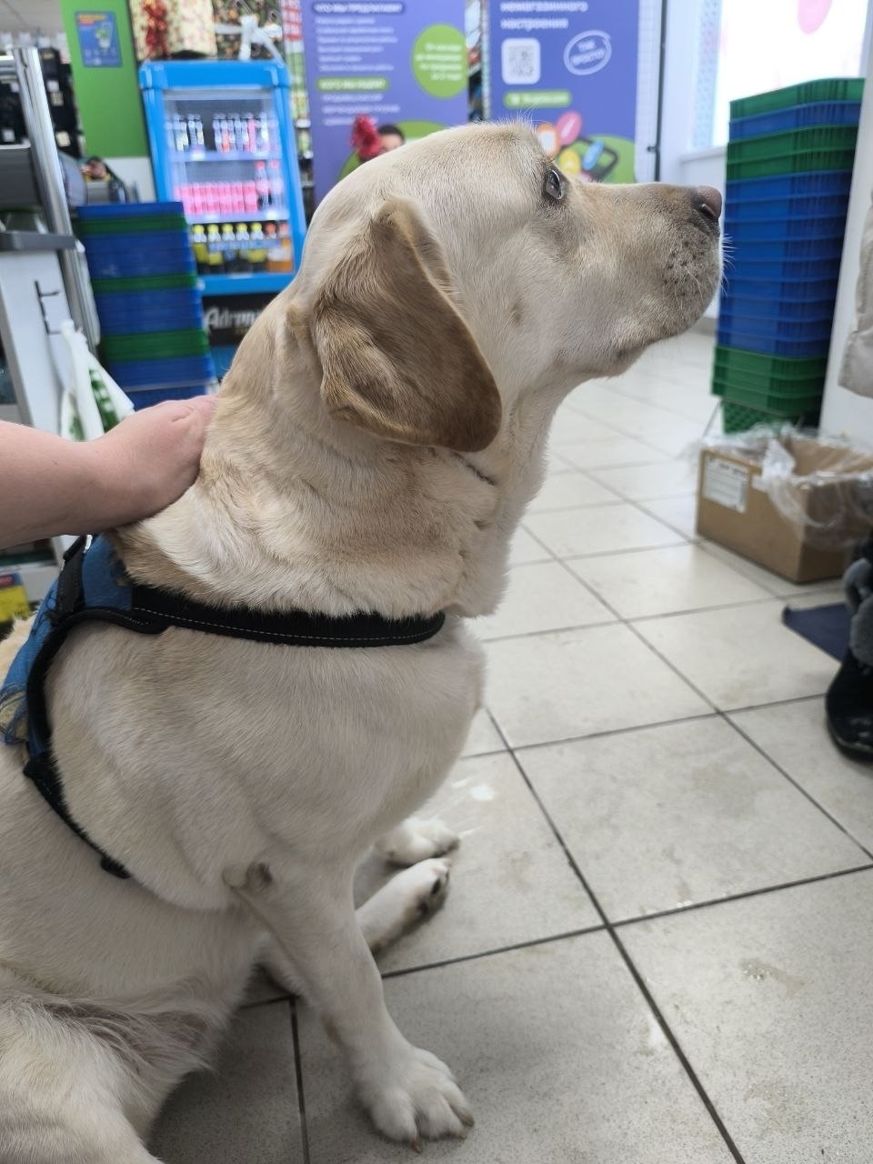 Найдена собака. В шлейке, контактная. Временно зафиксирована. Хозяева отзовитесь!!!