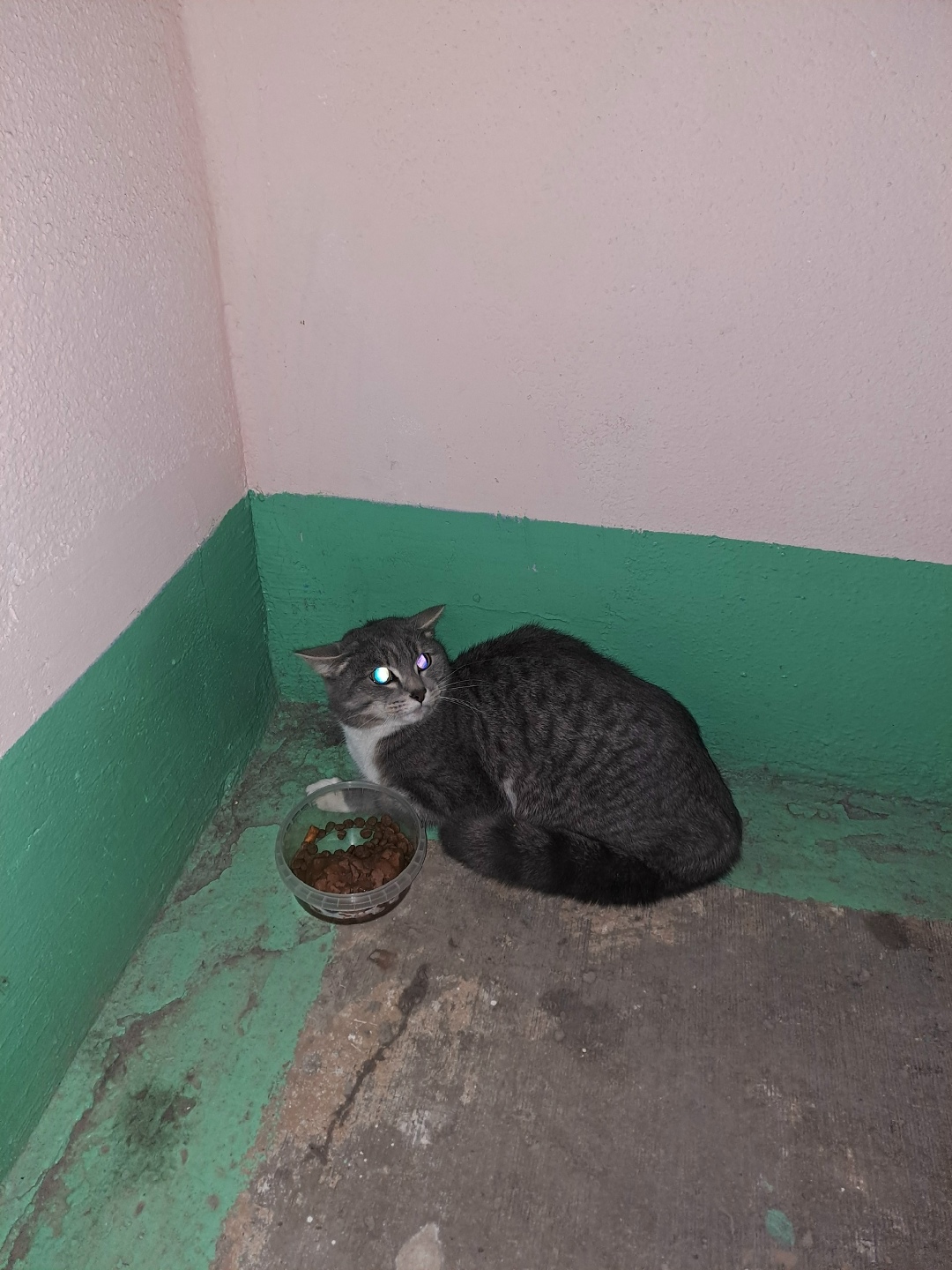 В подъезде на вагонке по улице Володарского нашли котенка девочку примерно год, красивая, чистая, напуганая. Опрос соседей ничего не дал, на объявление никто не откликнулся. Кто то видимо подкинул. Не все соседи в восторге и могут выгнать на улицу в любой момент. Она забивается в угол плачет. Взяла девушка на пару дней в общий коридор больше не сможет держать. У самих животные дома.