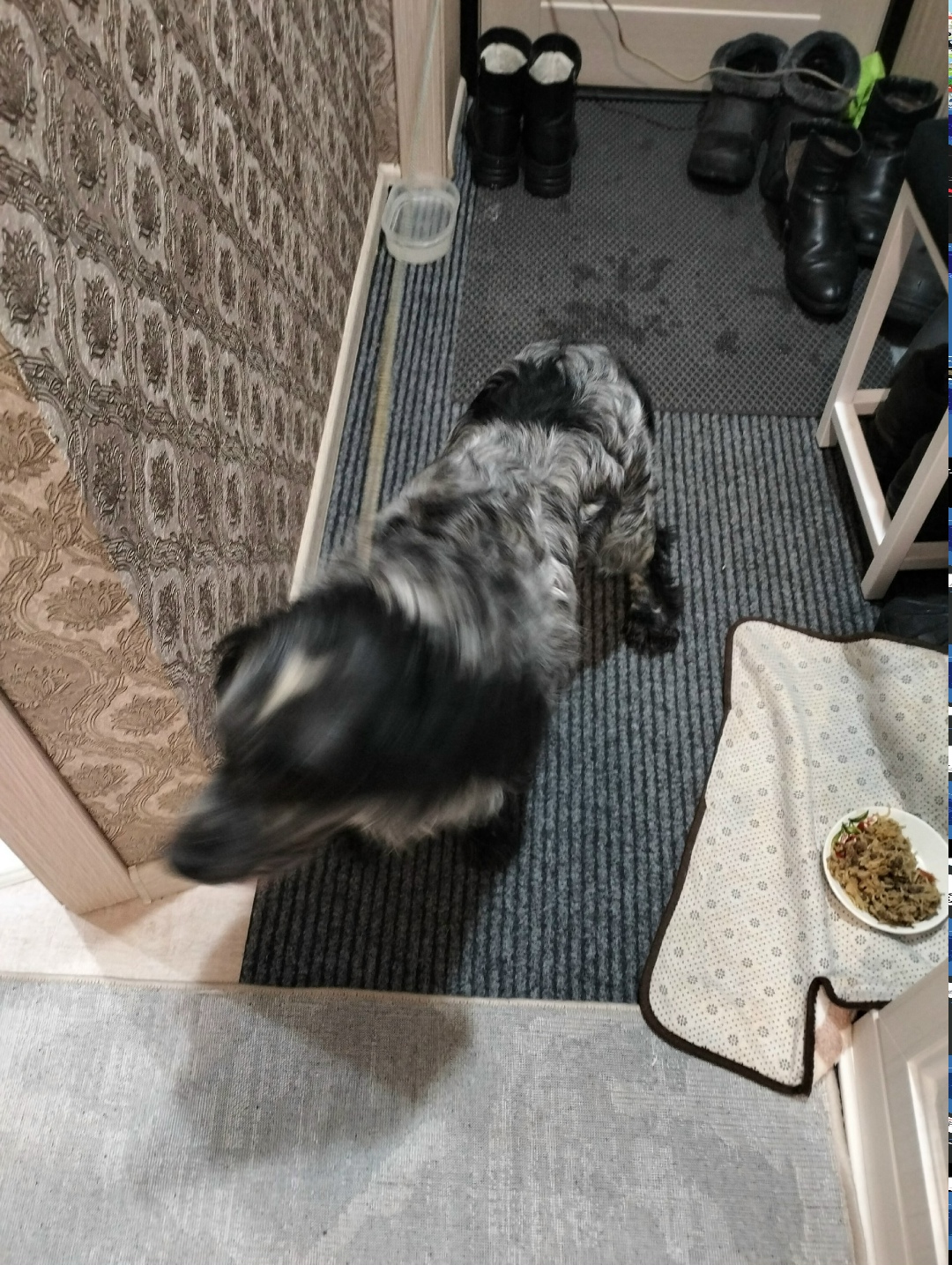 Собака общительная,увязывается за людьми.Хозяим отзовись.