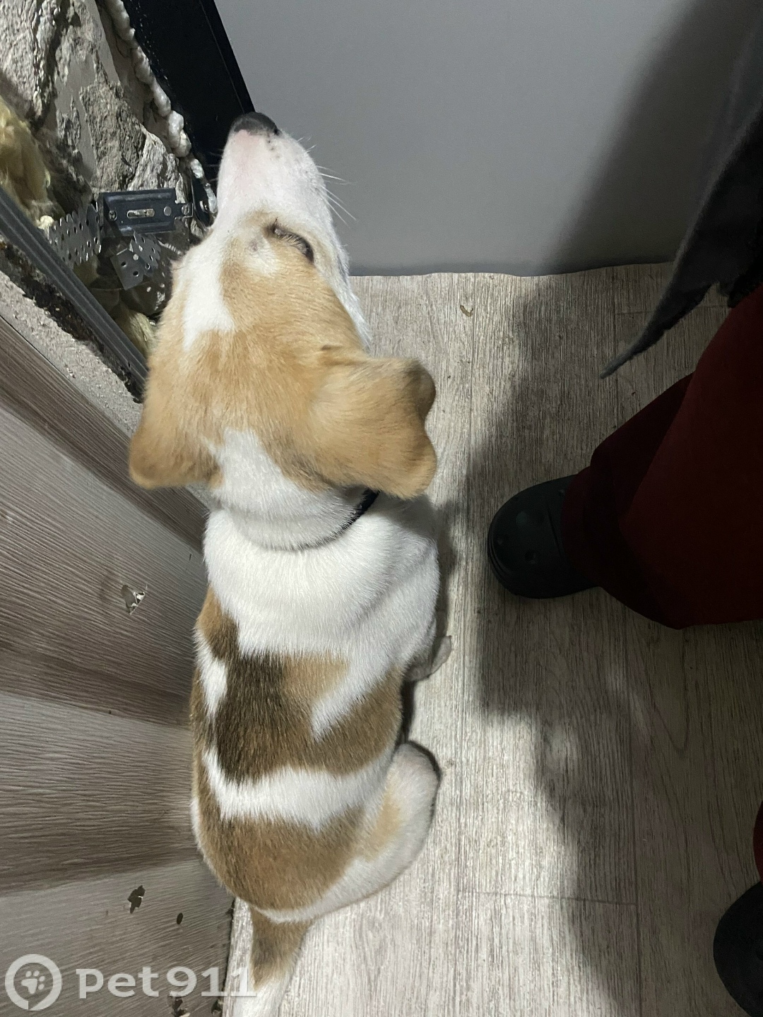 Маленький щенок,девочка Белая с оранжевыми пятнаями,домашняя,с ошейником