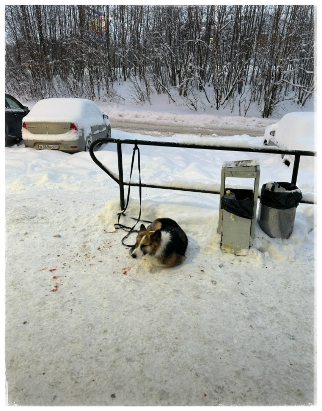 На Кольском 135 сегодня очевидцами была найдена привязанная травмированная собака.