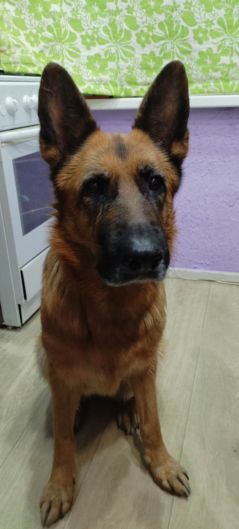 Найдена овчарка, видно, что молодая. Скорее всего домашняя, но без ошейника. Бегала на Кольском проспекте 30. Смогу придержать до обеда.