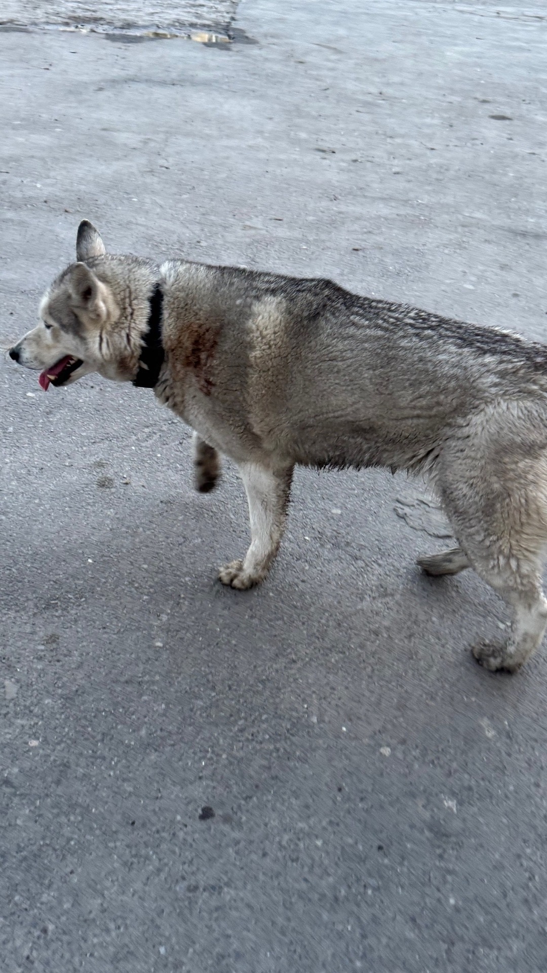 Кто потерял хаски? Бегает в районе рынка русское поле в крови. Может ранен,а может испачкался. В руки не дается. На нем черный ошейник