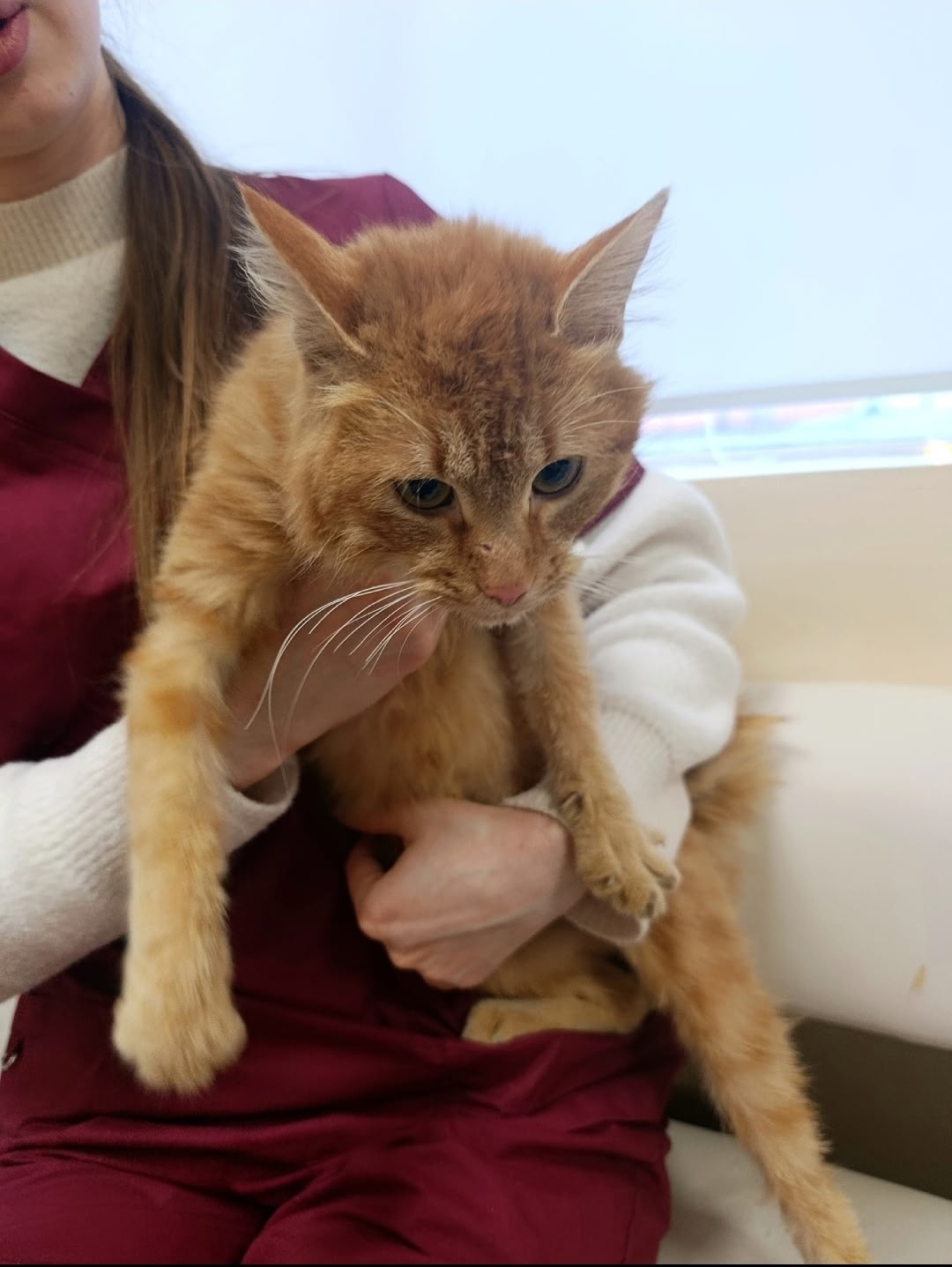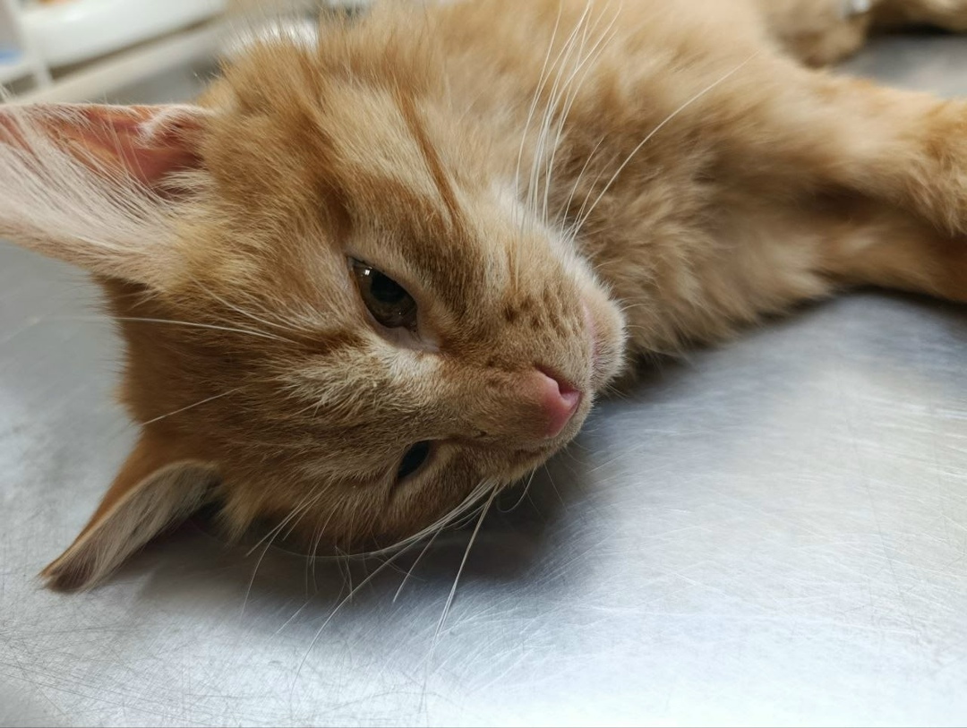 Эту молодую рыжую истощенную кошку нашли на трассе вдали от жилых домов.... Не смогли проехать мимо, привезли в город. В клинике её стерилизовали.