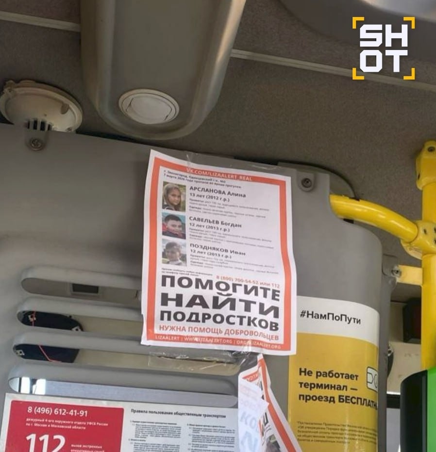 Среди пропавших — два 12-летних мальчика: Богдан и Ваня, — и 13-летняя девочка Алина. Вчера они пошли гулять по берегу Москвы-реки в Звенигороде и больше их никто не видел. На берегу нашли шарф одного из школьников.