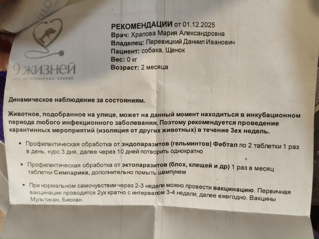 Прививок нет, но у ветеринара прошел обследование с результатами, прикрепленными во втором фото