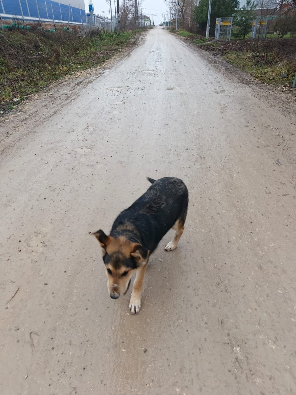 Замечена собака, в ошейнике, бродит по помойкам. Возможно потерялась, местные собаку не знают.