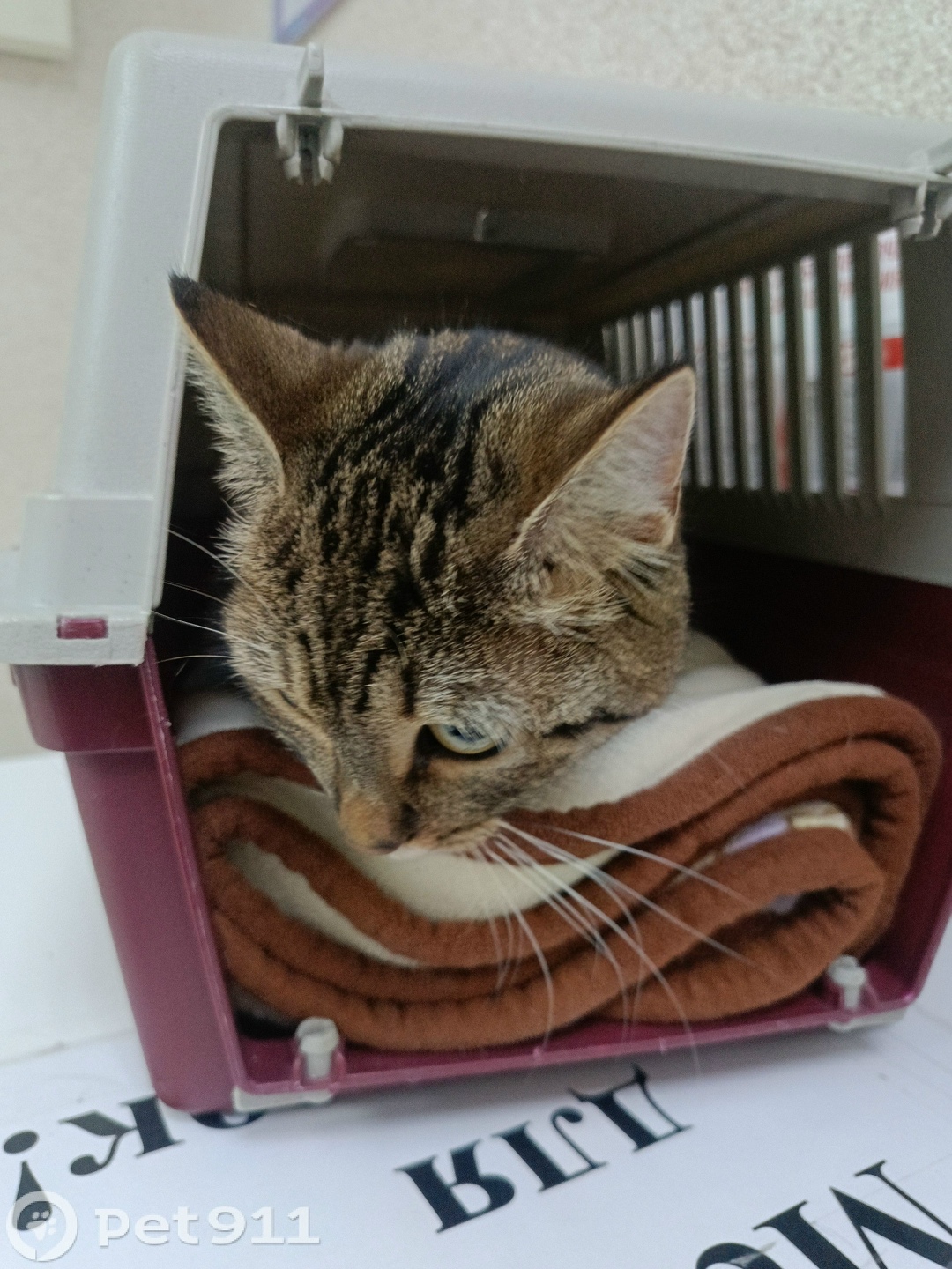 Молодая кошечка в переноске стояла возле дома, за подъездом в переноске, внутри одеяло. Клинически здоровая, не стерилизованная