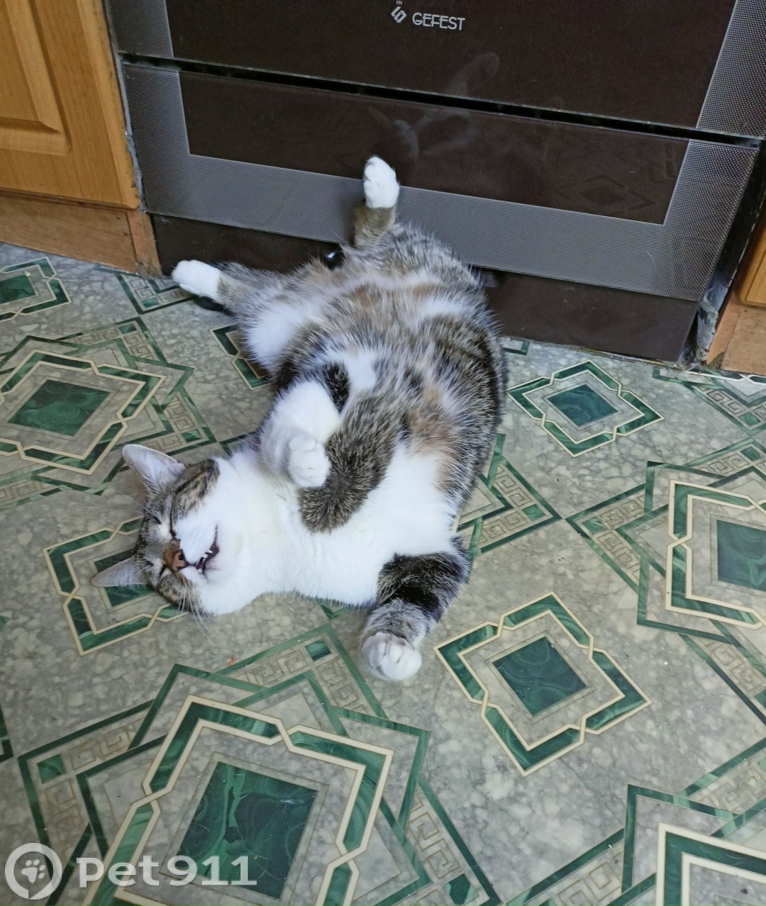 Окрас на спине коричневый, похож на бенгала, на грудке и лапах, белые пятна. Кончик хвоста искривлен. Вылез из окна. Чужим не даётся, может царапаться.