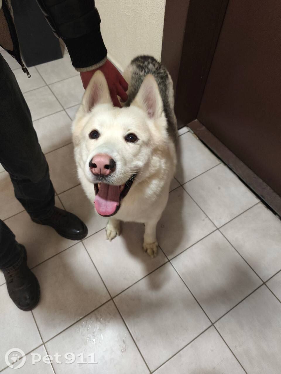 Найдена собака Хаски, мальчик Очень послушный с розовым носиком. Никто не может забрать на передержку, из подьезда отпускалт его на улице, сейчас в подьезде. Нужно срочно найти хозяина или передержку.