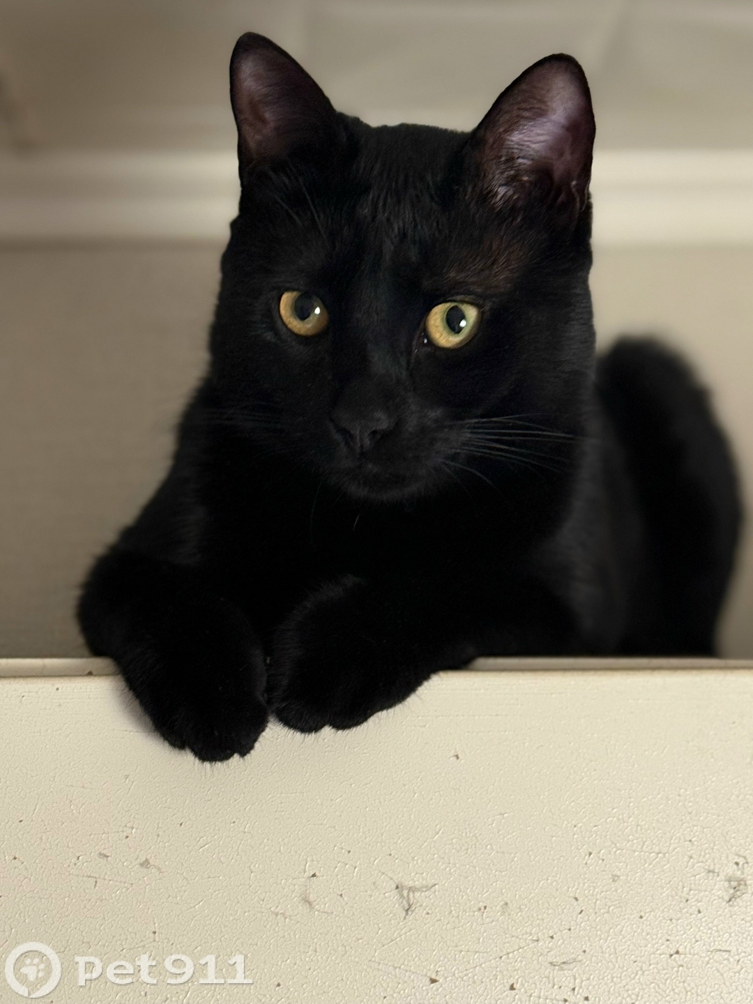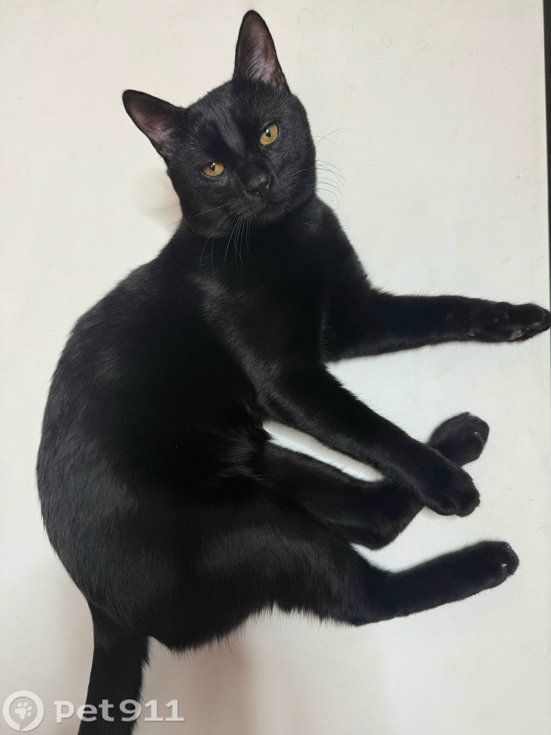 Окрас черный, шерсть гладкая, белое пятно на пузе и на задних лапках у когтей Симбе 1 год.
