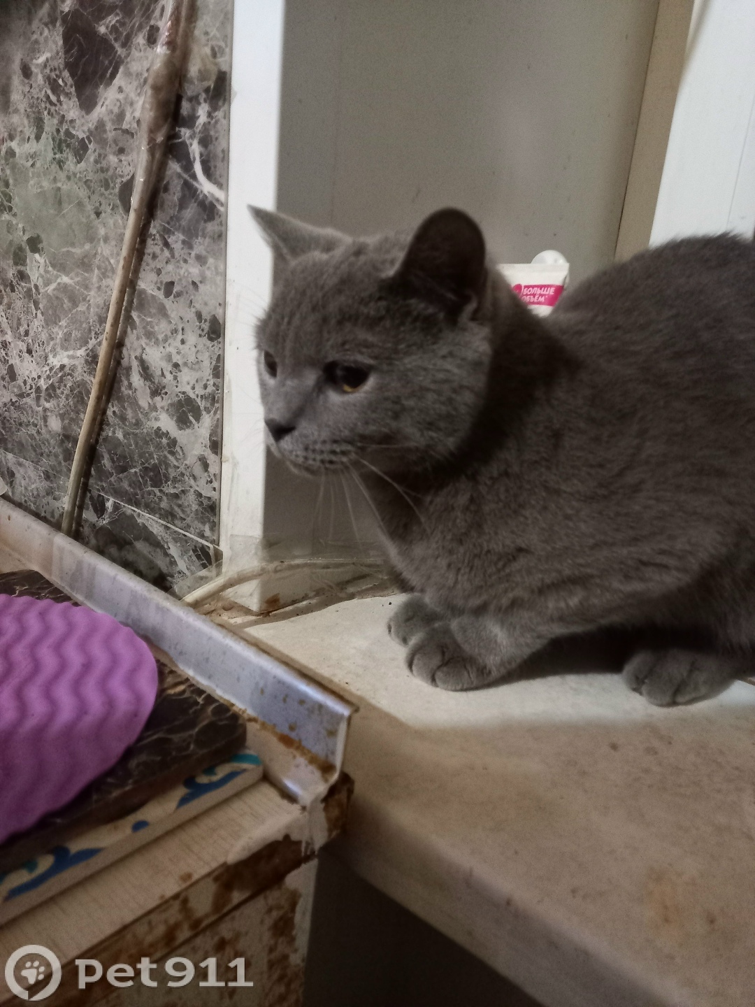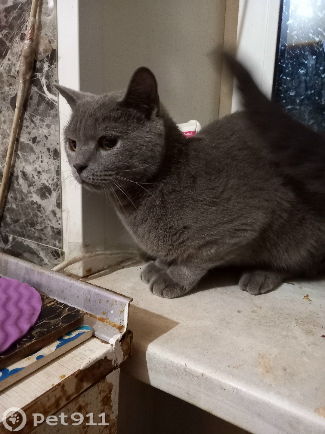Около бани, серая кошечка, воспитанная, ласковая, по столу не лазеет, серого окраса, похоже на британскую
