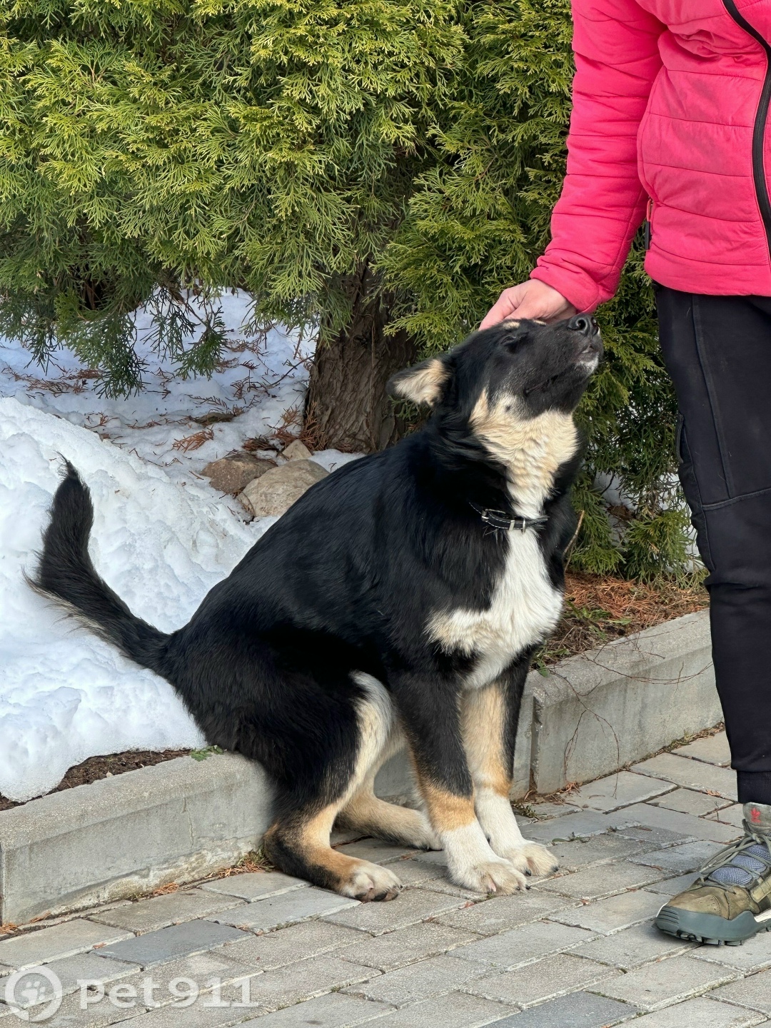 Порода шепски, окрас черный с бело-рыжими лапами, четкий белый крест на груди, рыжие бровки, глаза карие, на брюхе родимые пятнышки. Не кастрирован. Не пугливый, любопытный и доверчивый, может прыгнуть и прикусить руку играючи. Вечером открыл калитку и ушел гулять, по горячим следам найти не удалось