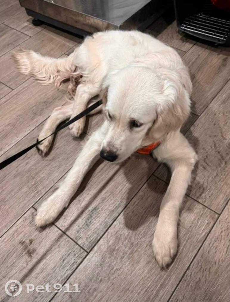 Голден ретривер, девочка, до года Без амуниции, клейма и чипа нет, собака в течке На носу рана