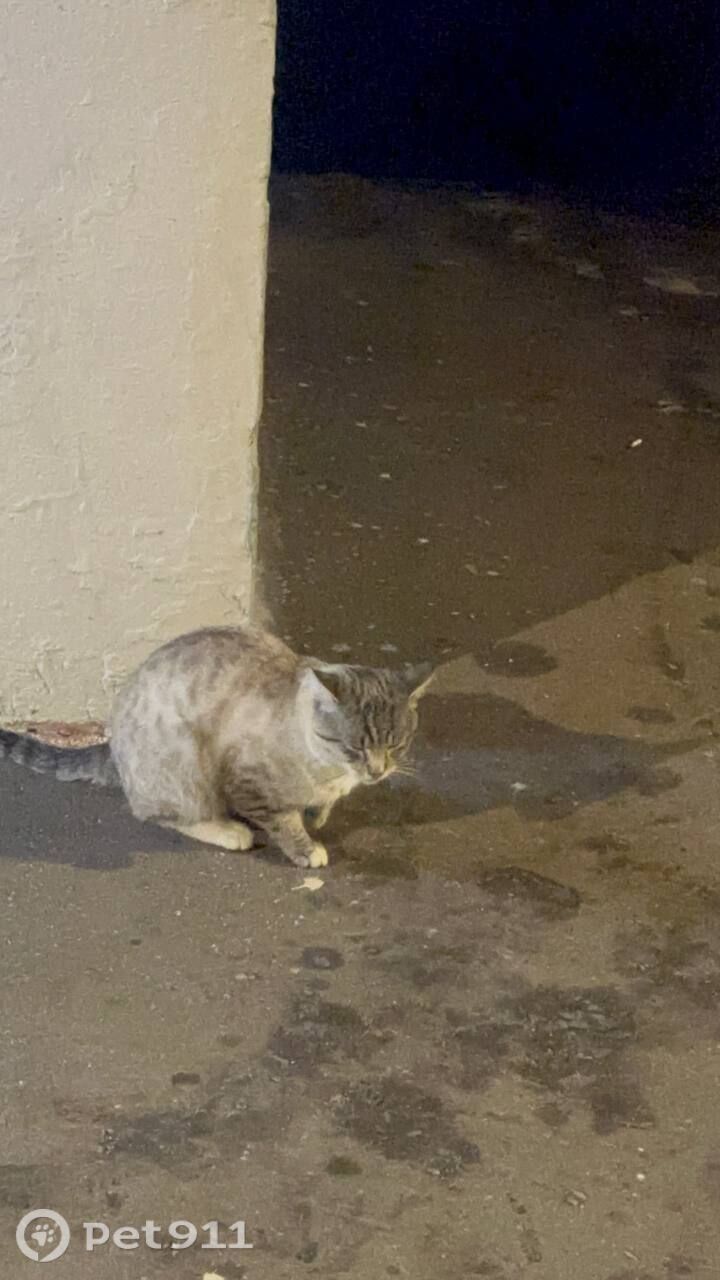 Первый раз кота заметили примерно пару месяцев назад. Очень нежный и контактный. Мурлыкает и подбегает, если позвать. Возможно, бывший домашний. Похож на породистого — бенгал+сиамец.