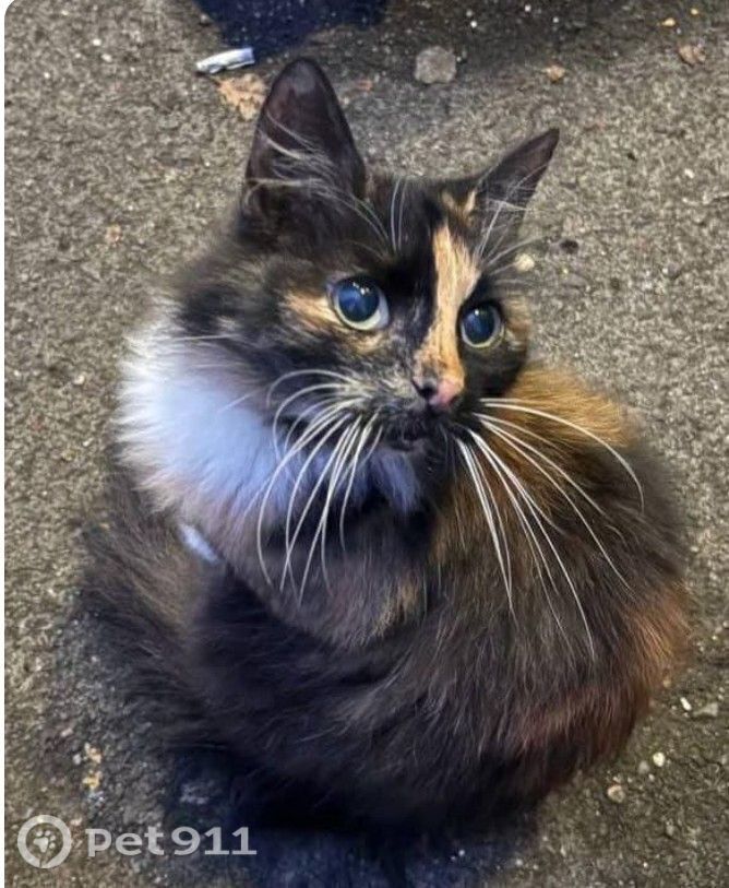 Трёхцветная кошка домашняя на улице Телефон на последнем скрине ;
