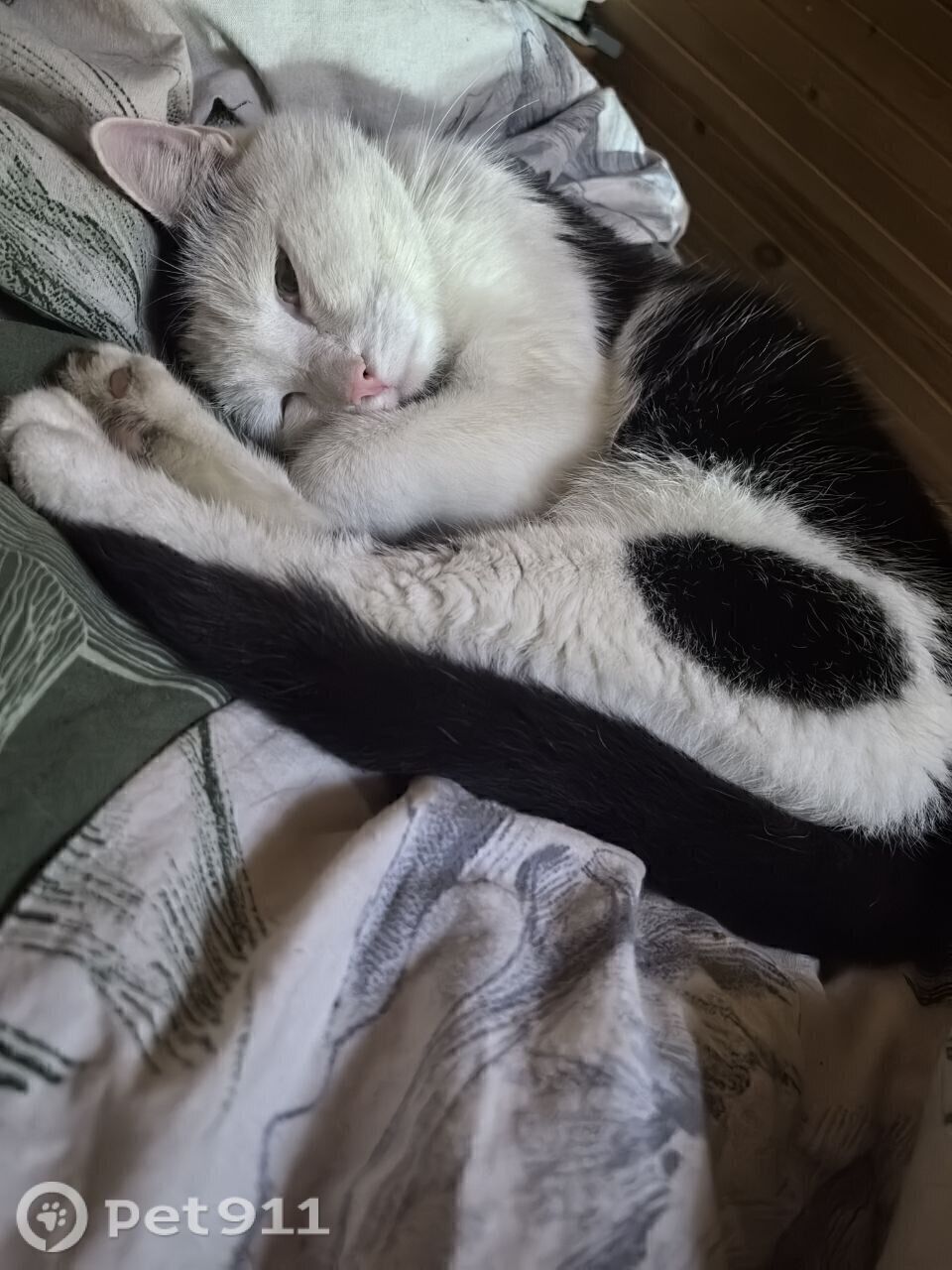 Черно-белый кот. Очень пуглив, к чужим не подходит. Голос тихий. С ночи 30.11 на 1.12.35. Вышел на улицу в СНТ, не вернулся. МО СНТ «Золотилово», Сергиево‑Посадский г. О. Д. Золотилово, Хотьково.