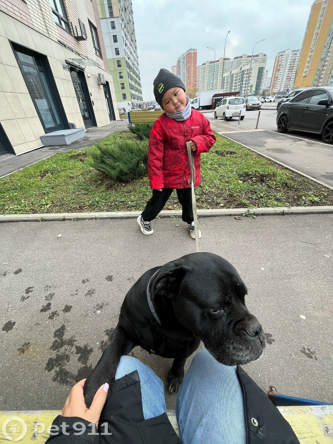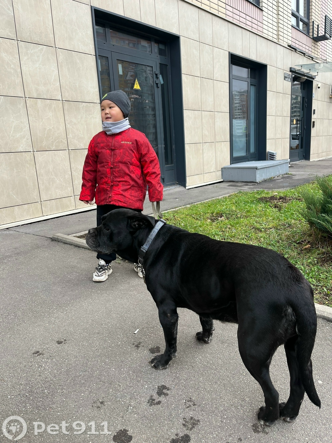 Порода Кана корса, окрас черный, ошейник темно синий, не агрессивная, добрая, к людям и другим животным очень дружелюбная. Живем в частном доме, вылезла под забором, крайний раз ее видили на ул Льва Яшина дом 5
