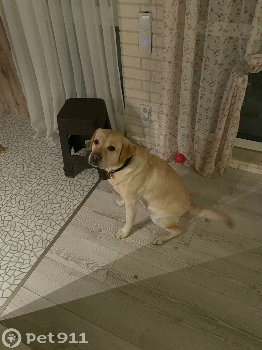 Лабрадор, 5 лет, окрас палевый, к людям относится дружелюбно, на ней одет кожаный коричневый ошейник, на животе цифры 3004, сбежала в середине 30 ноября