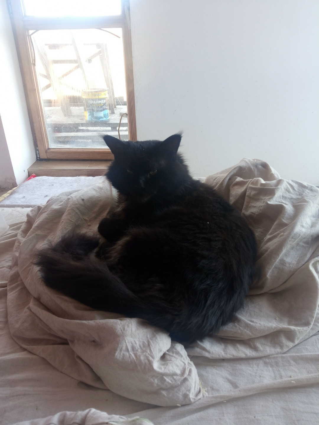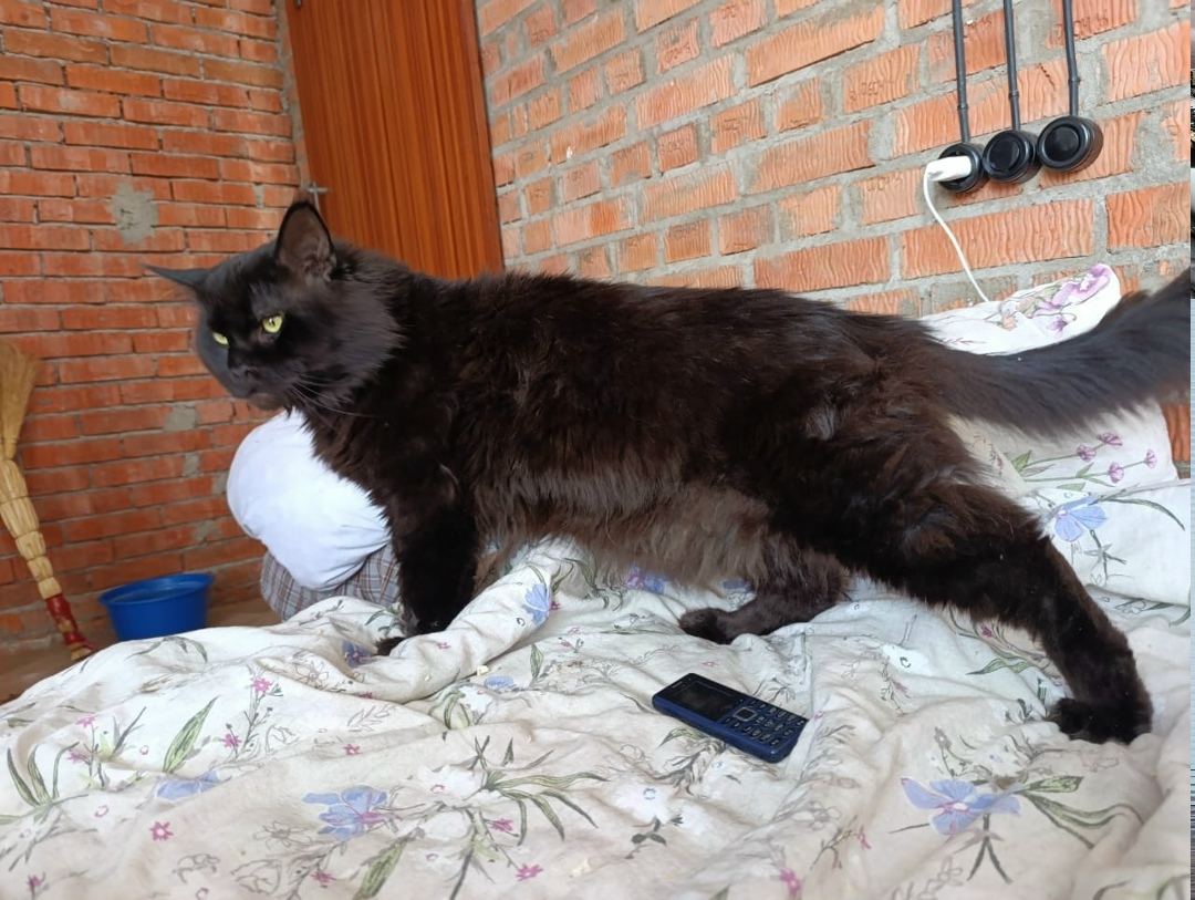 Пропал домашний кот мейн-кун чёрного цвета, случайно вышел из дома Калужская область, Боровский район, город Ермолино, улица Русиново, дом 27 и пропал 13 апреля 2026 года под вечер.
