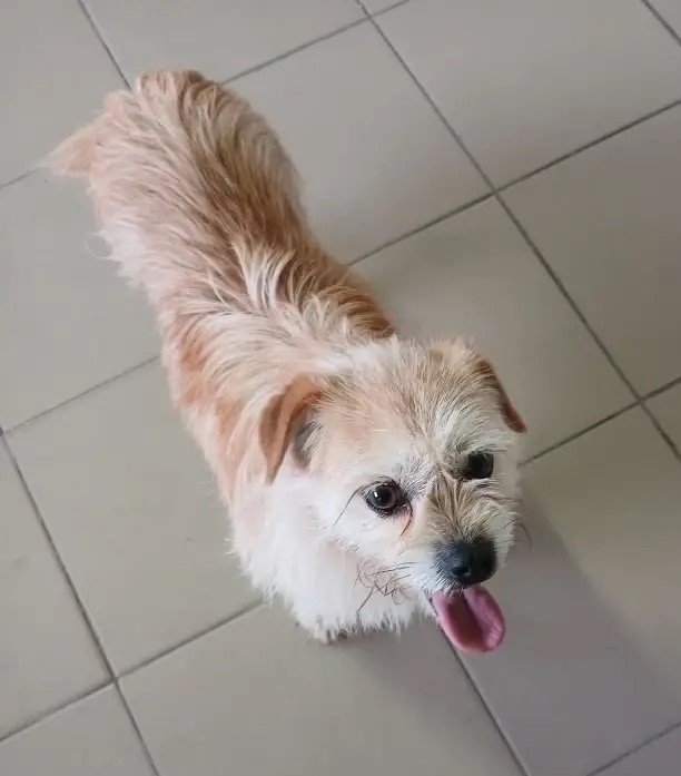Вот такая маленькая собачка прибилась к заводу ,может быть кто-то ищет ее, ошейника нет. Мальчик.