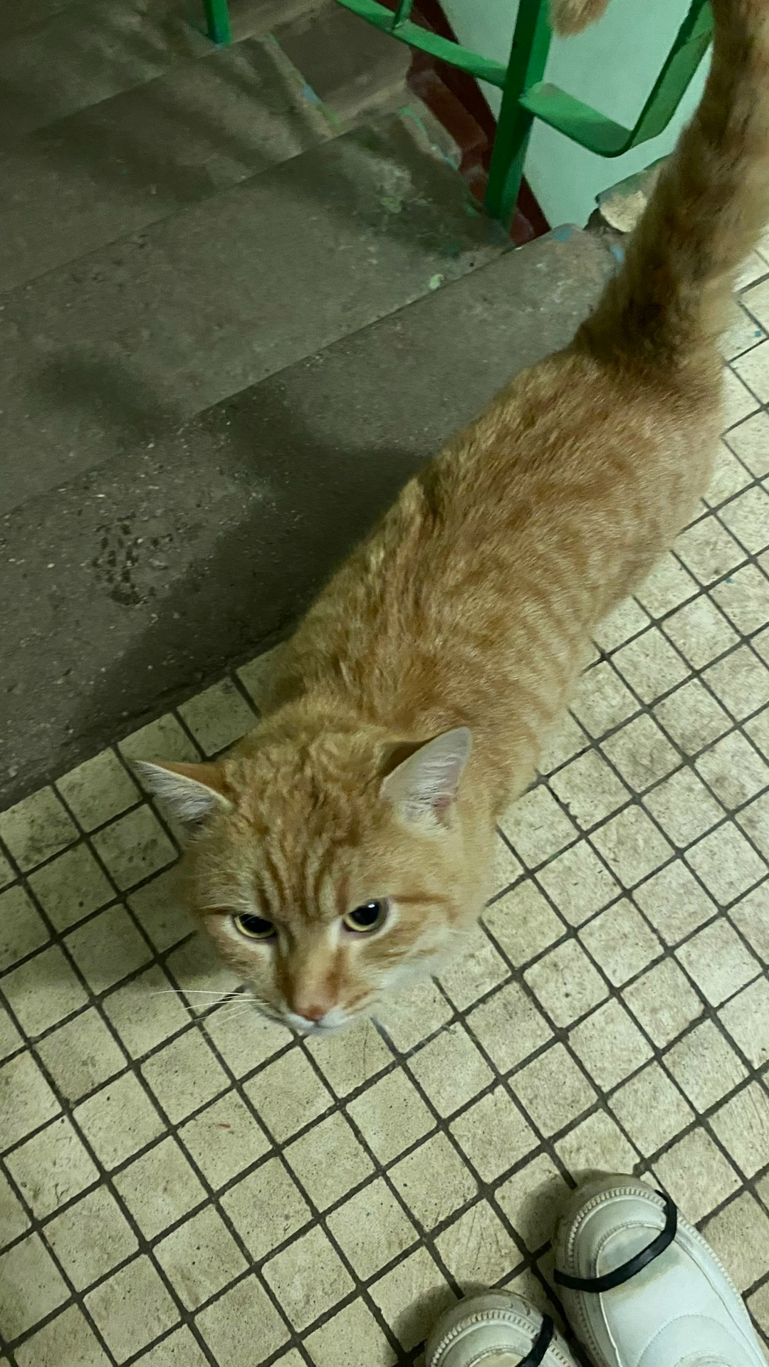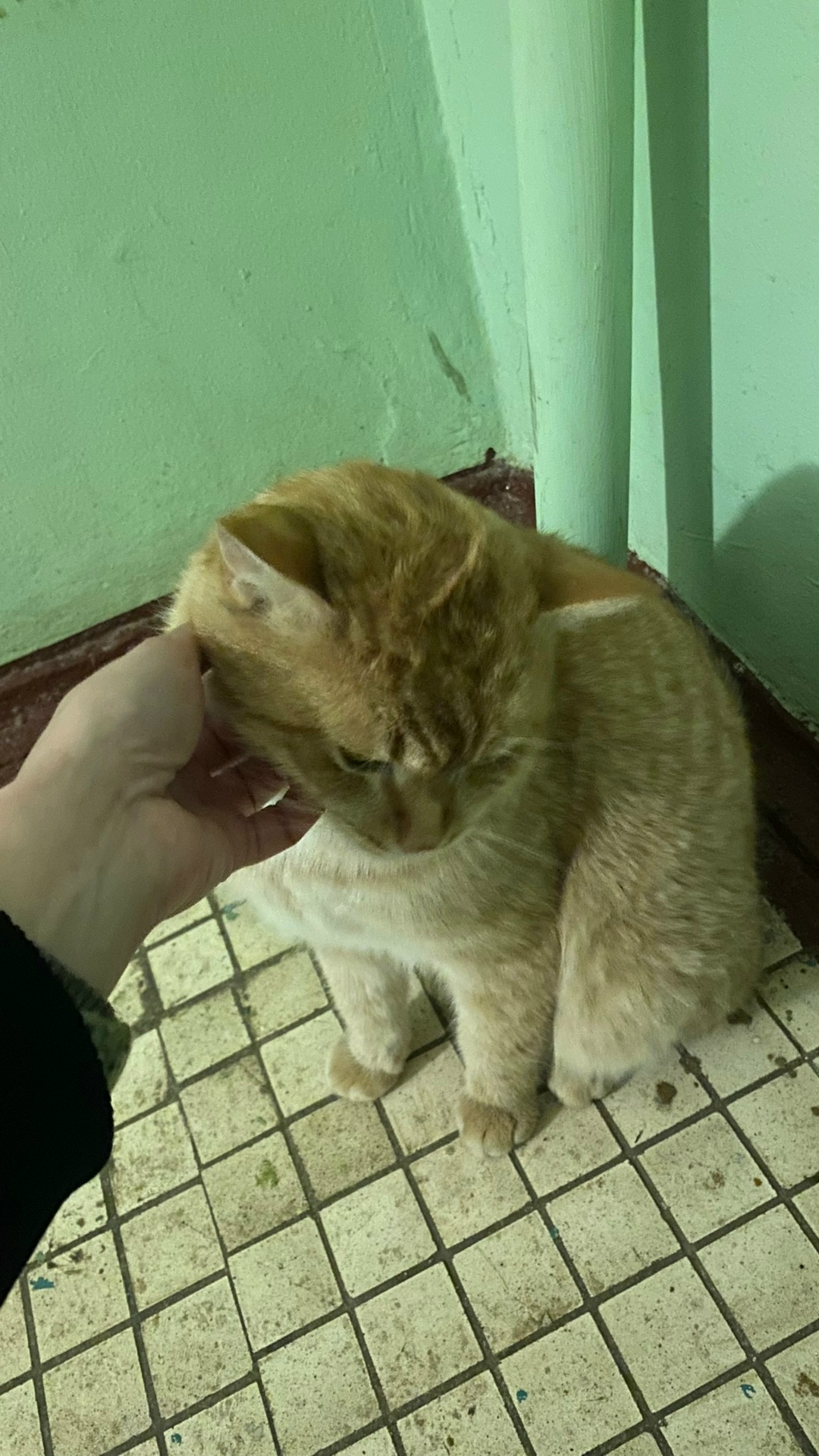Найден котик, рыжий кот, сидел долгое время в подъезде одного дома, сейчас перебрался в подъезд нашего дома.