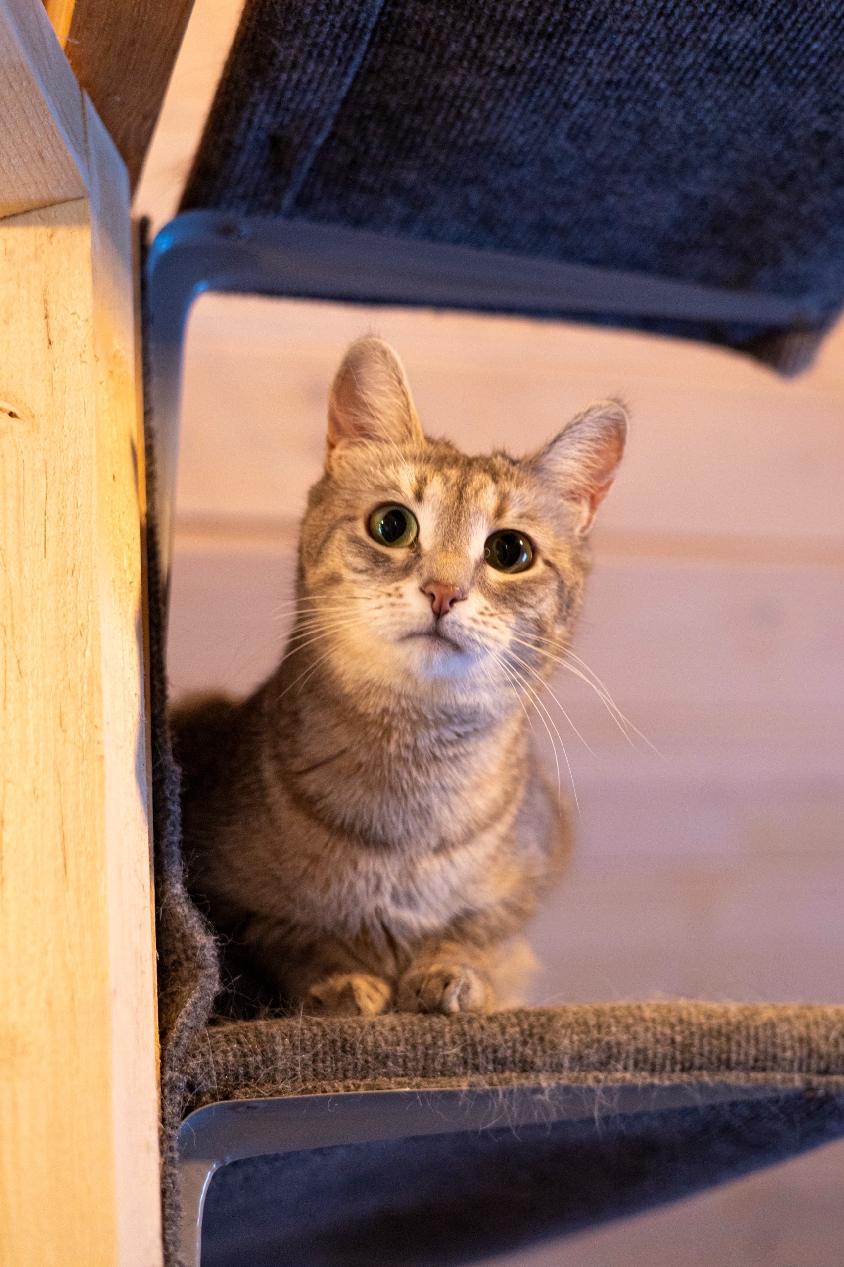 Первое время Лапочка боялась всех и вся, пряталась на верхотуре, а теперь бежит встречать няню, заранее включая тарахтящий моторчик.