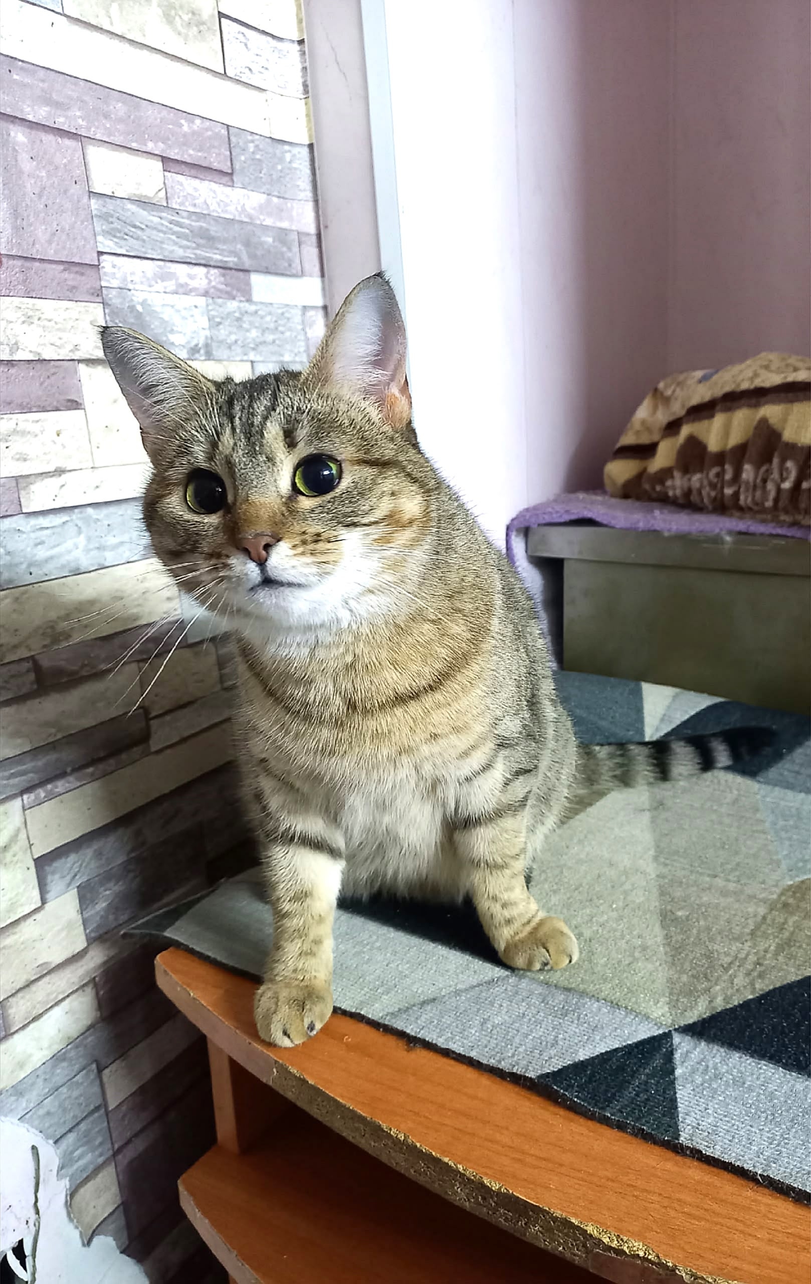 Жила у магазина, потерялась или бросили - гадать не берусь, но кошка точно бывшедомашняя. Молодая, стерилизована, обработана, лоток с древесным наполнителем знает и успешно им пользуется. Ласку принимает благосклонно, но фамильярностей не любит. С сородичами общается, но предпочитает спать в уединении. Кошка, которая ревностно охраняет личное пространство. Симпатяга и хлопотунья, этакая хозяюшка Валта ищет 🏡