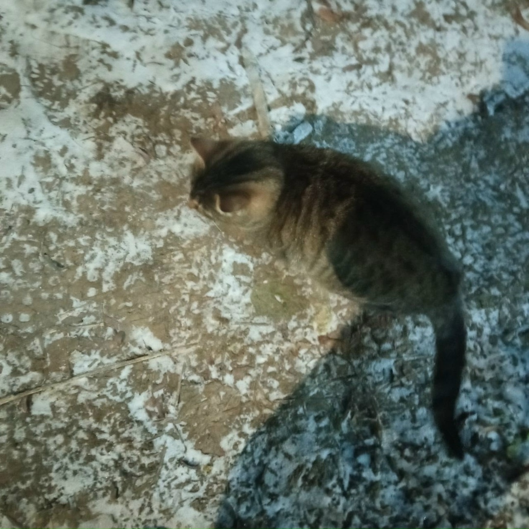 В мкр-не Климовск у одного из жилых домов по проспекту 50 лет Октября во 2й половине декабря 2025г. появилась кошка, окрас табби (шпротный). По виду домашняя (чистая, ухоженная) и очень контактная (позволяет себя гладить, не боится забегать в подъезд). Такое впечатление, что потерялась и очень хочет домой.